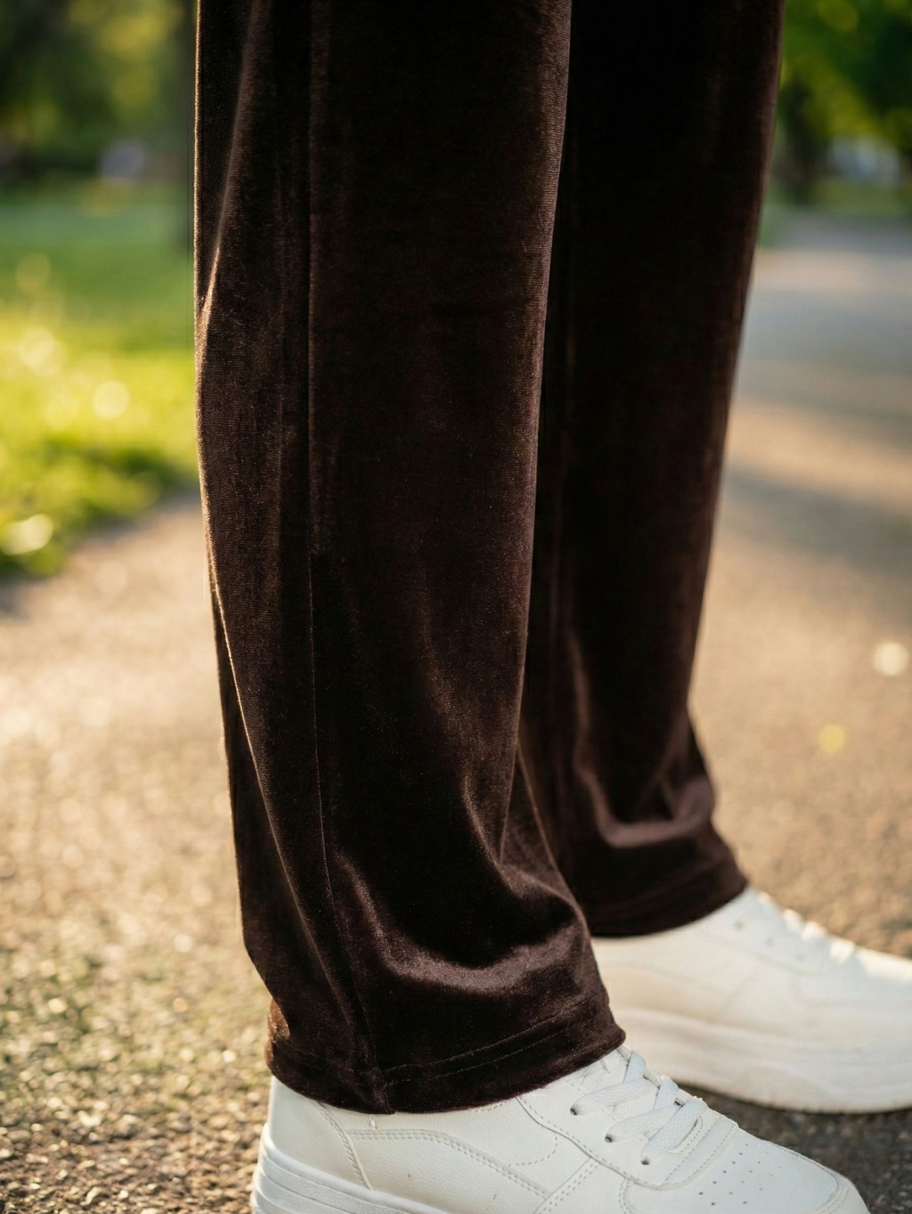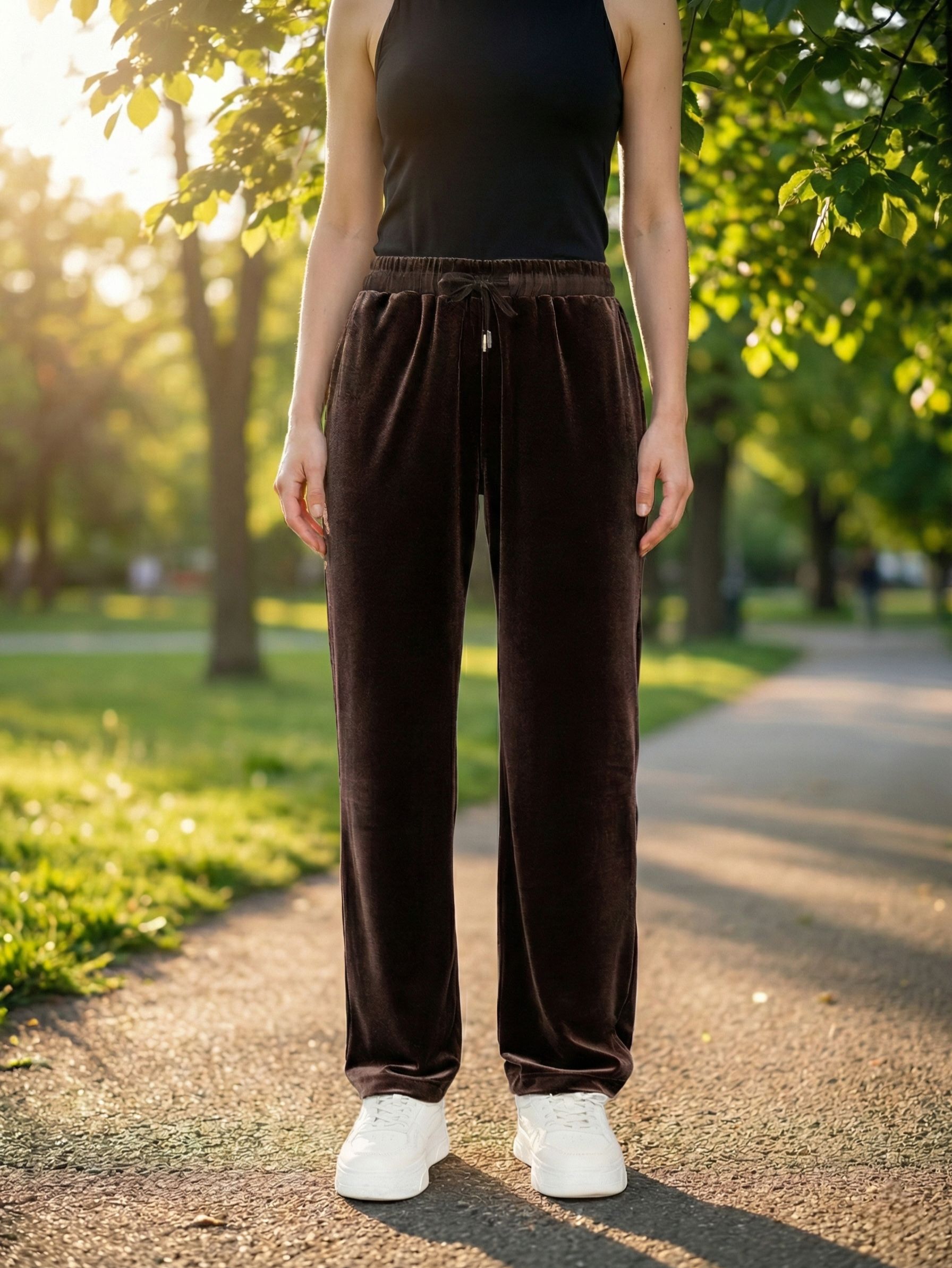 Женские трикотажные бархатные брюки прямого кроя на широком поясе-резинке с завязками итальянского бренда Franco Vello.