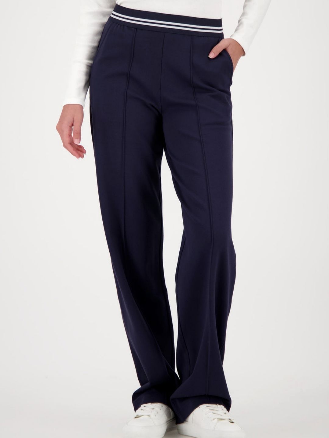 Непринуждённый стиль сочетается с повседневным комфортом благодаря этим свободным джоггерам немецкого бренда Monari насыщенного тёмно-синего оттенка.