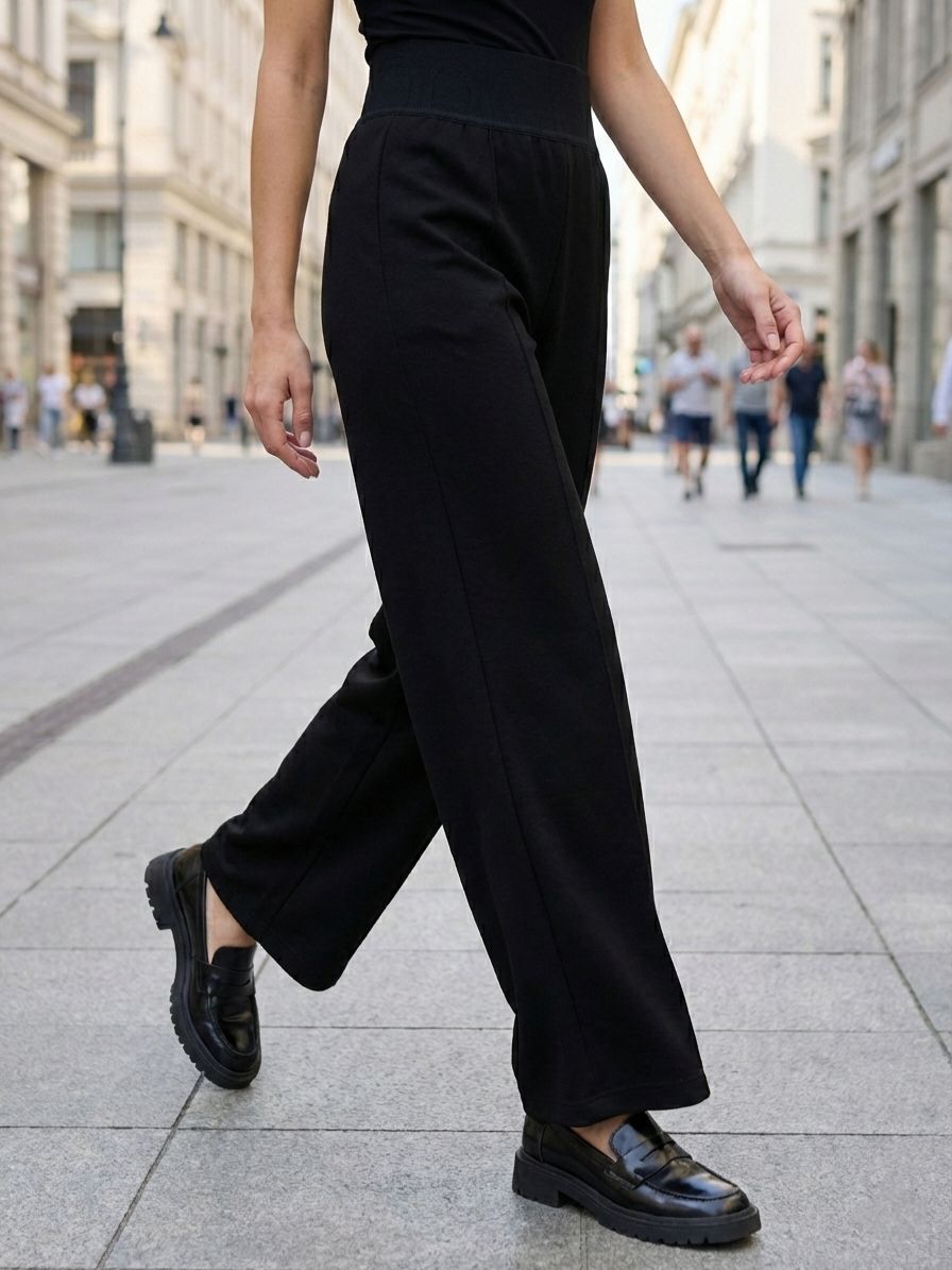 Широкие женские брюки прямого кроя на поясе-резинке итальянского бренда Franco Vello.