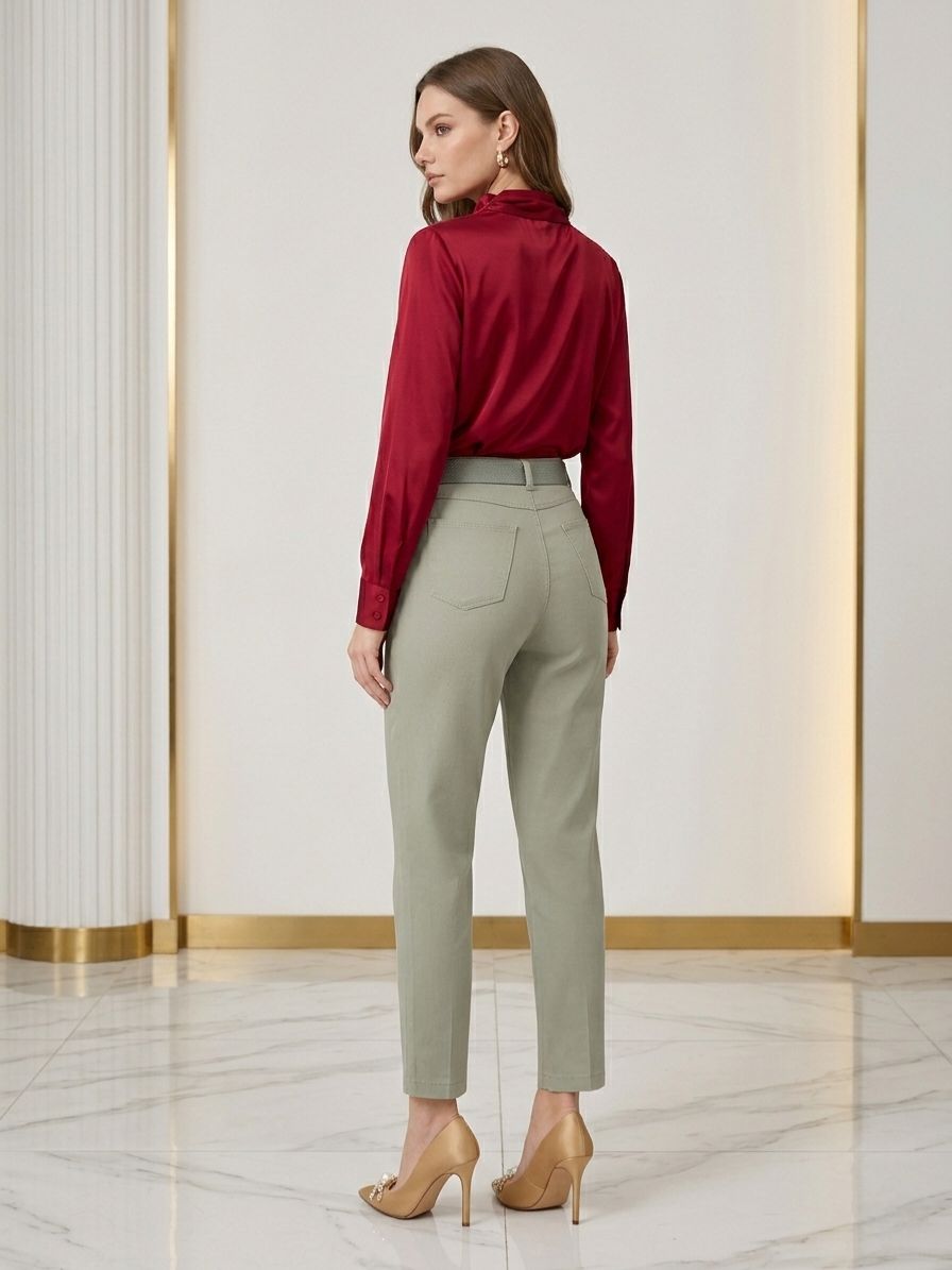 Джинсовые женские брюки (джинсы) зауженного кроя с поясом из плотной хлопковой ткани с эластаном итальянского бренда Franco Vello.