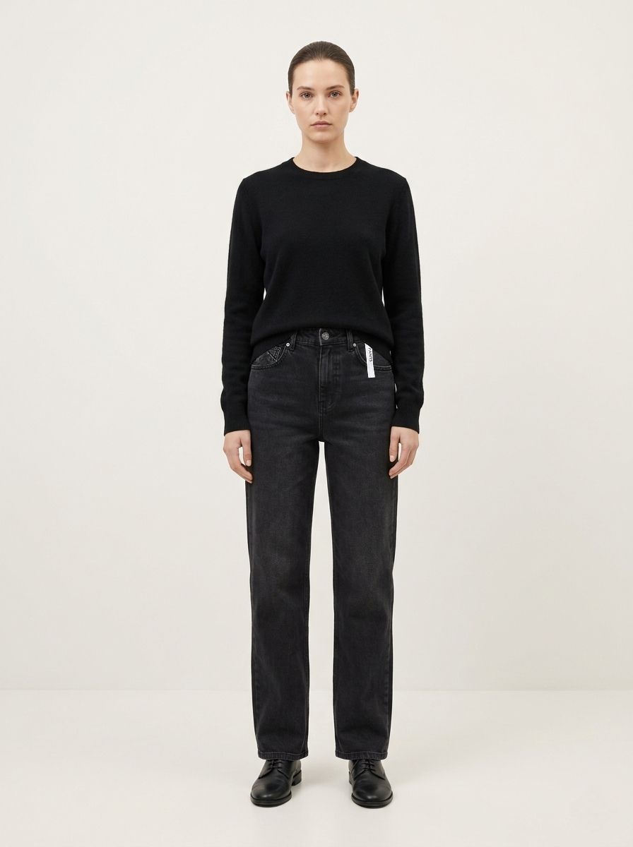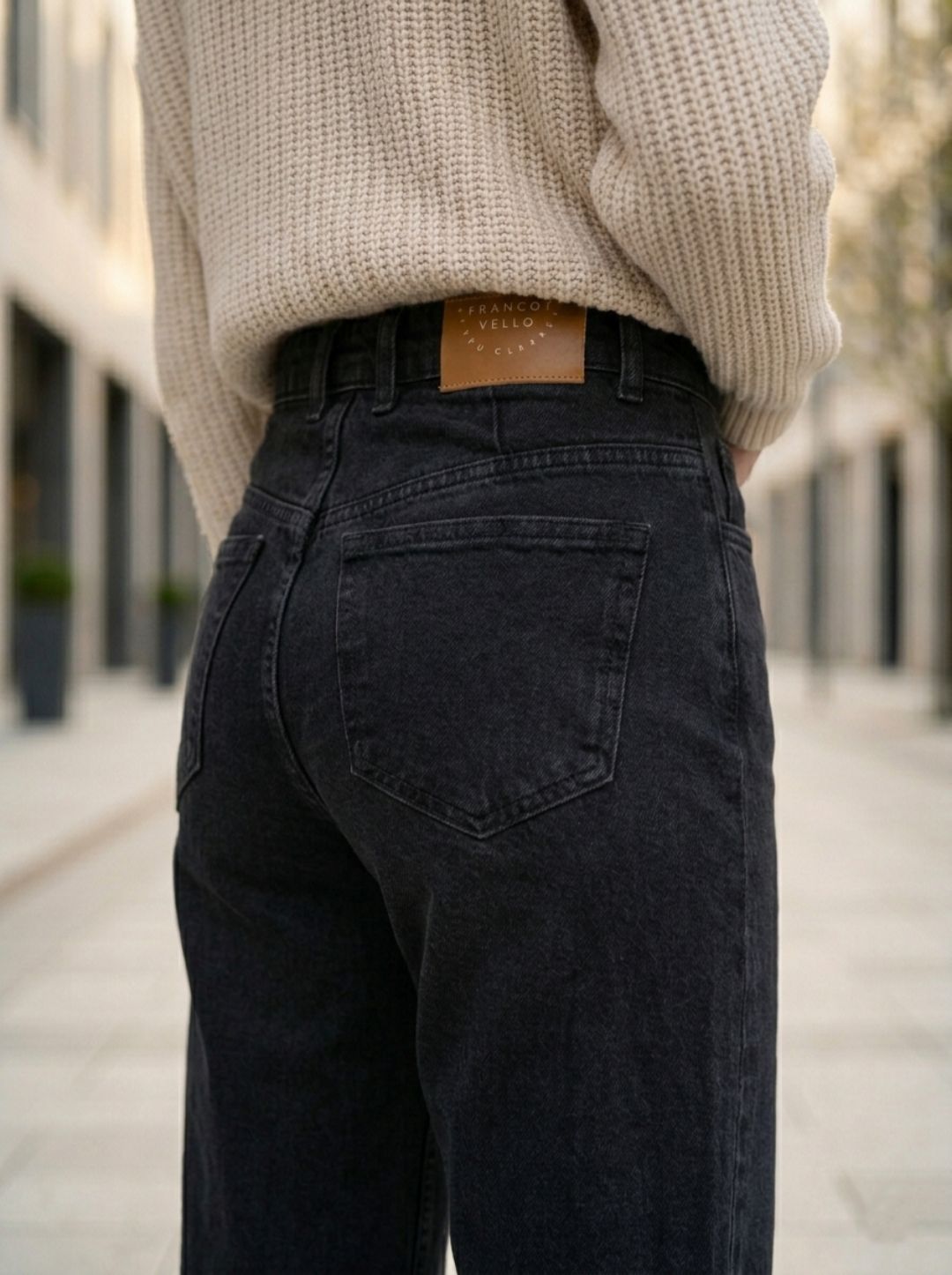 Джинсовые женские брюки (джинсы) прямого кроя из плотной хлопковой ткани с эластаном темно-серого цвета итальянского бренда Franco Vello.