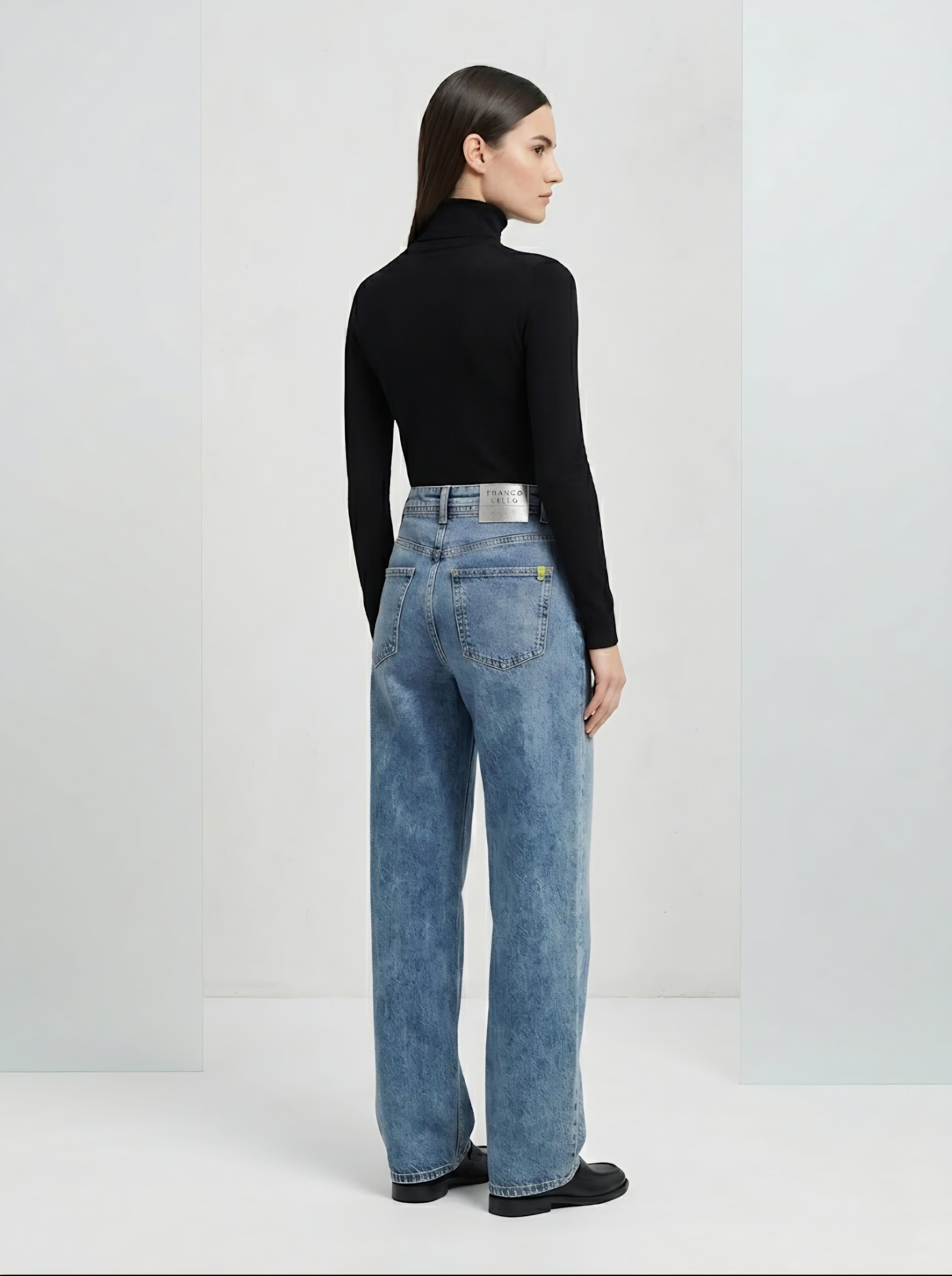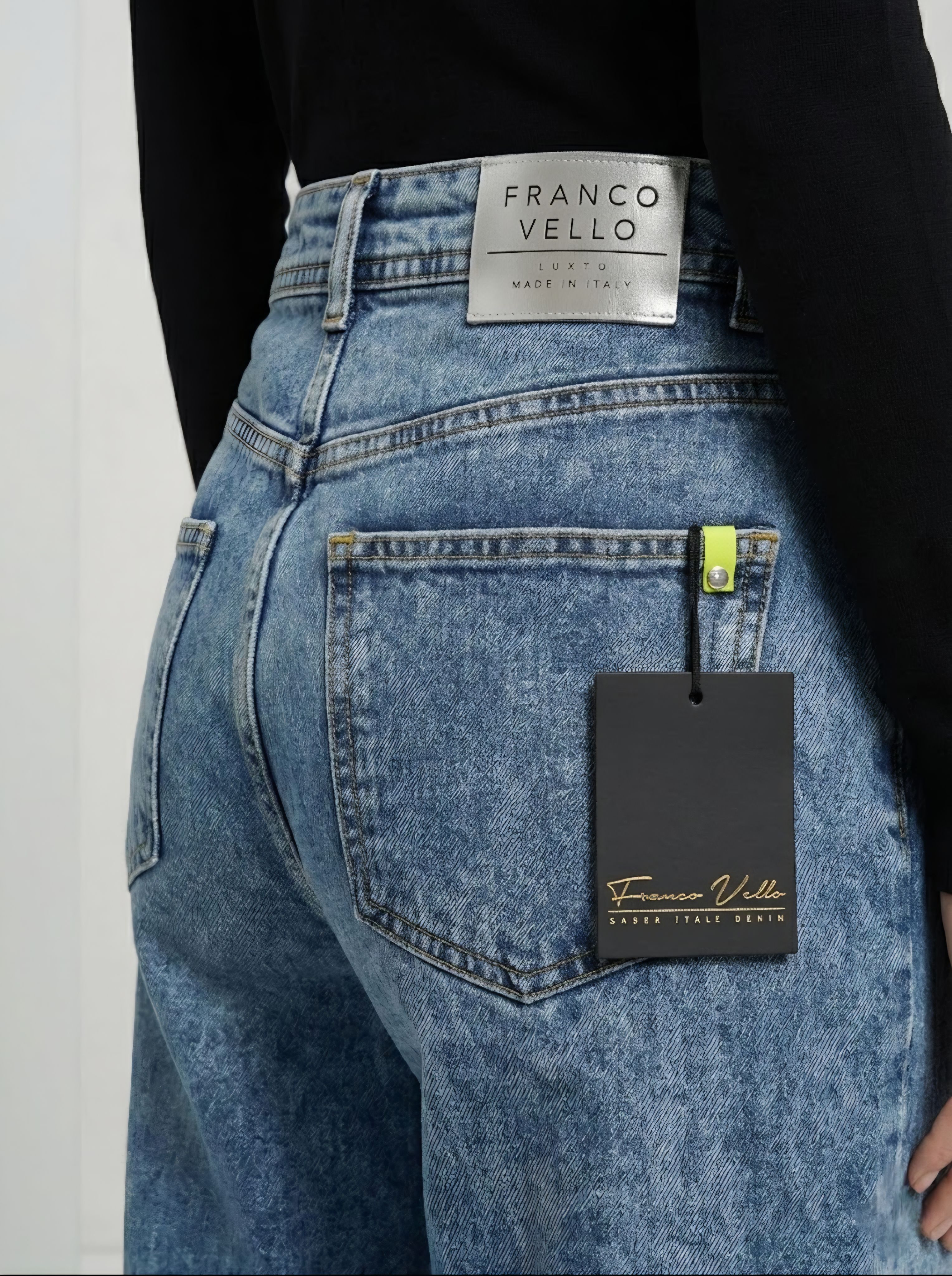 Джинсовые женские брюки (джинсы) прямого кроя из плотной хлопковой ткани с эластаном итальянского бренда Franco Vello.