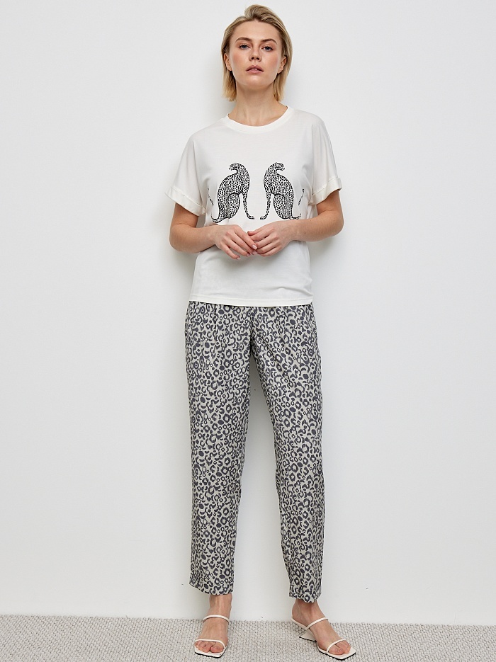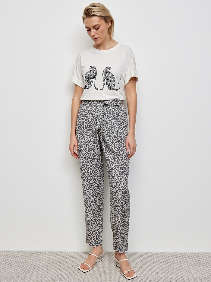 Летние женские брюки с поясом и анималистическим принтом немецкого бренда Bulmer.