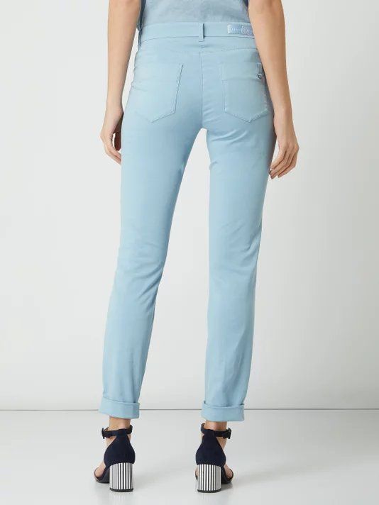 Зауженные облегающие брюки из мягкого, эластичного хлопка с отворотами. Цвет: голубой (229), темно-синий (297). Бренд: Luisa Cerano. Страна бренда: Германия. Детали: Средняя посадка. Отвороты. Шлевки для ремня. Мягкая, эластичная ткань. Нашивка с логотипом бренда. Накладные карманы сзади. Карманы с отрезным бочком спереди. Нашивка на кармане из тесьмы. Длина внутреннего шва при размере 36 (42 рос.): 78 см, ширина талии при размере 36 (42 рос.): 40 см. (обхват талии 80см). Состав: 96% хлопок, 4% эластан. Уход: Деликатная стирка при 30 градусах жидким моющим средством. Не отбеливать. Не сушить в сушильной машине. Гладить на минимальном температурном режиме. Химчистка запрещена.