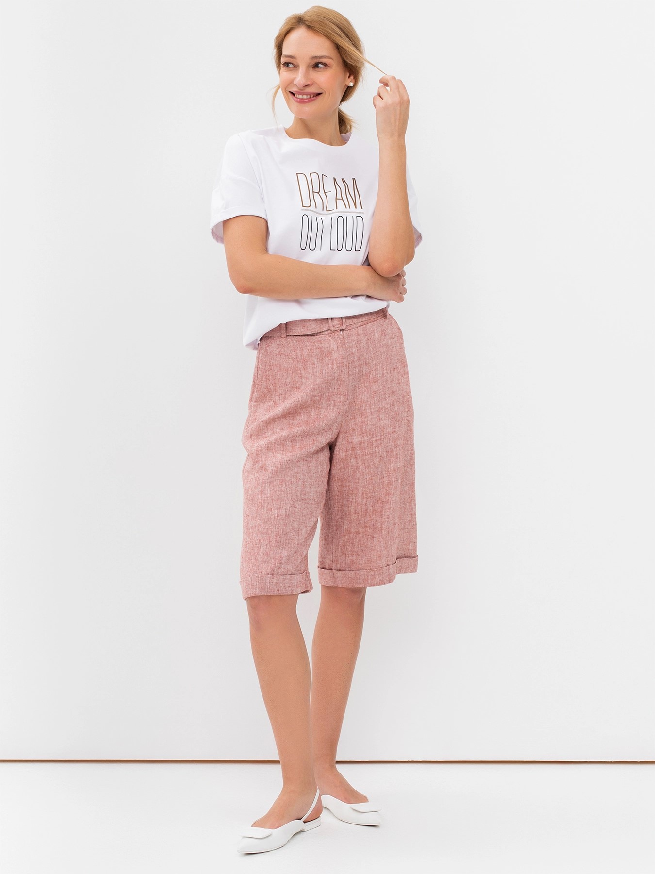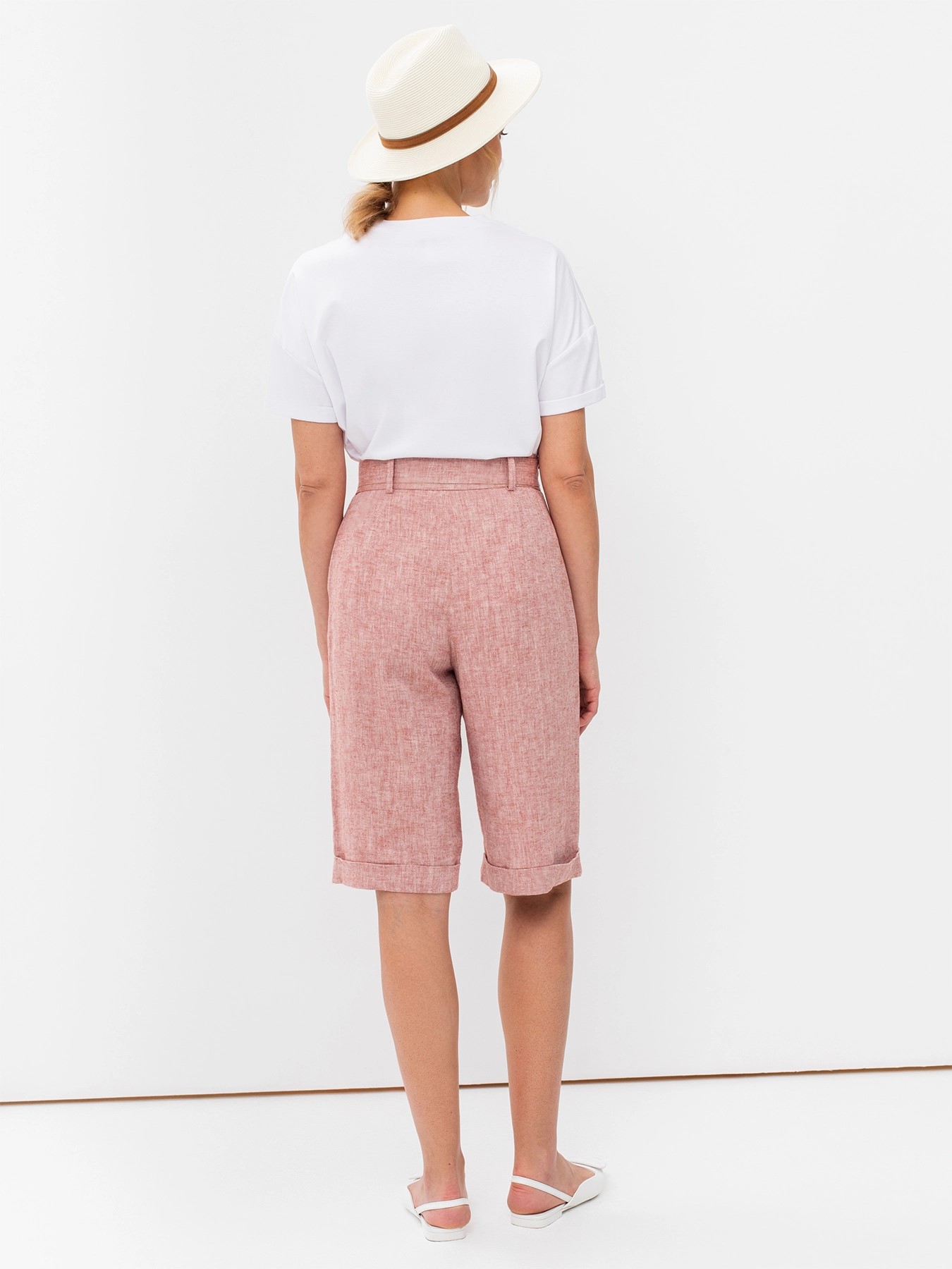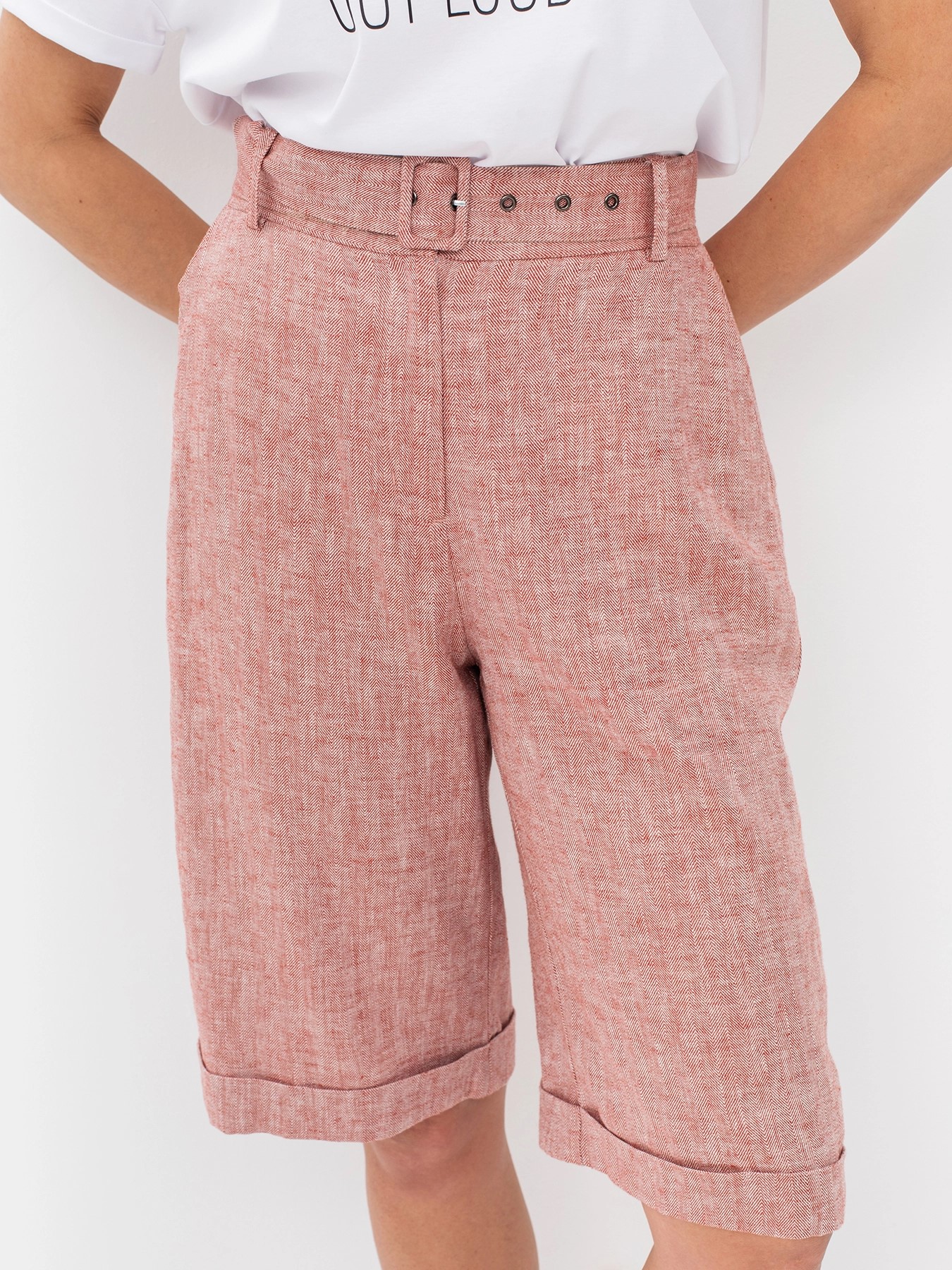 Льняные удлиненные шорты с поясом и отворотами немецкого бренда Bulmer.