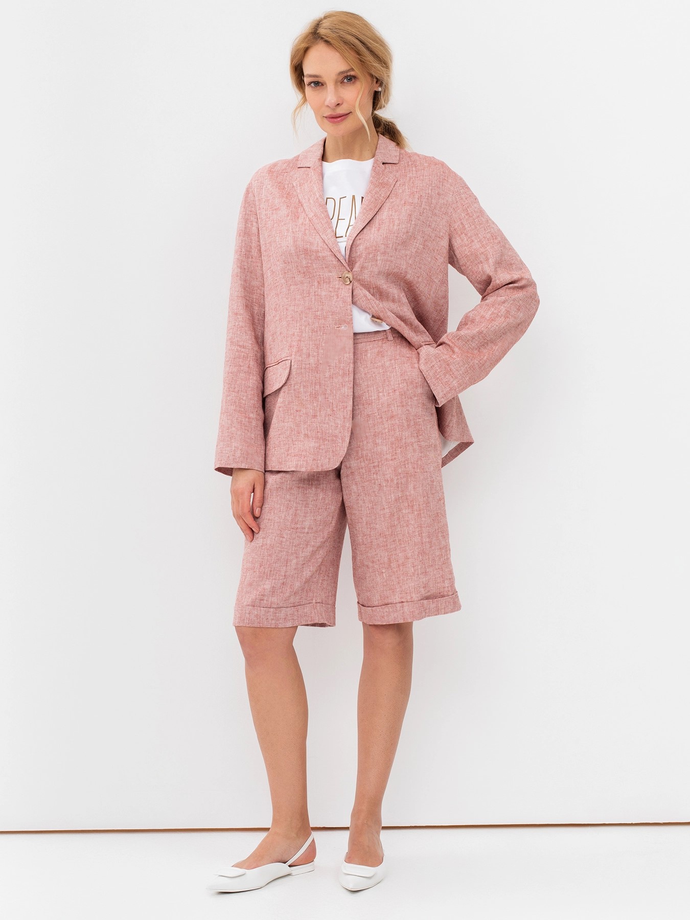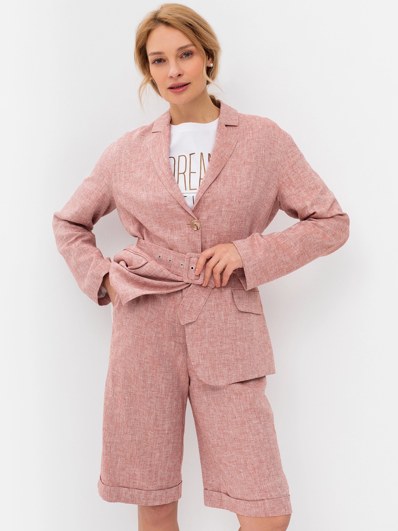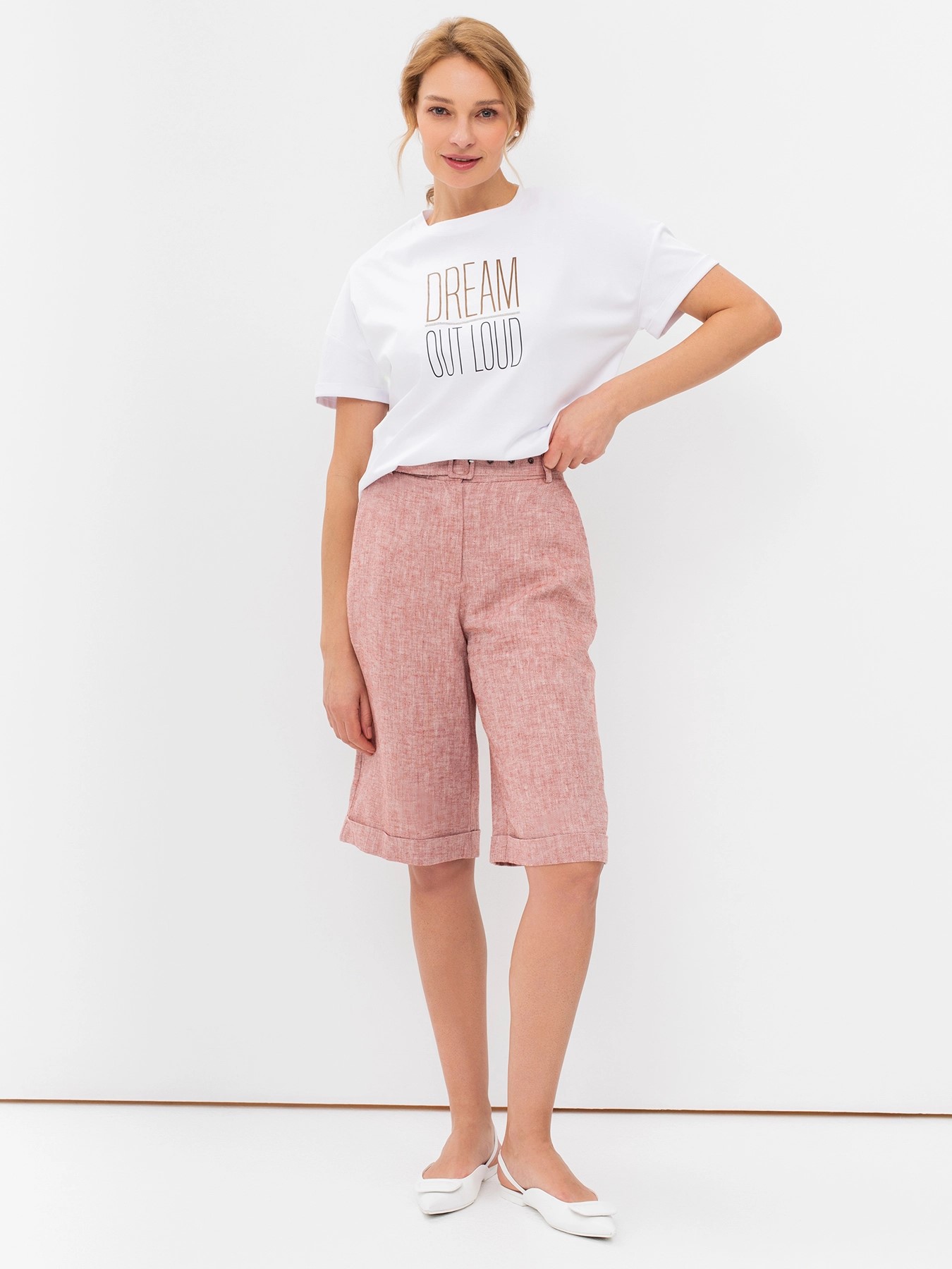 Льняные удлиненные шорты с поясом и отворотами немецкого бренда Bulmer.