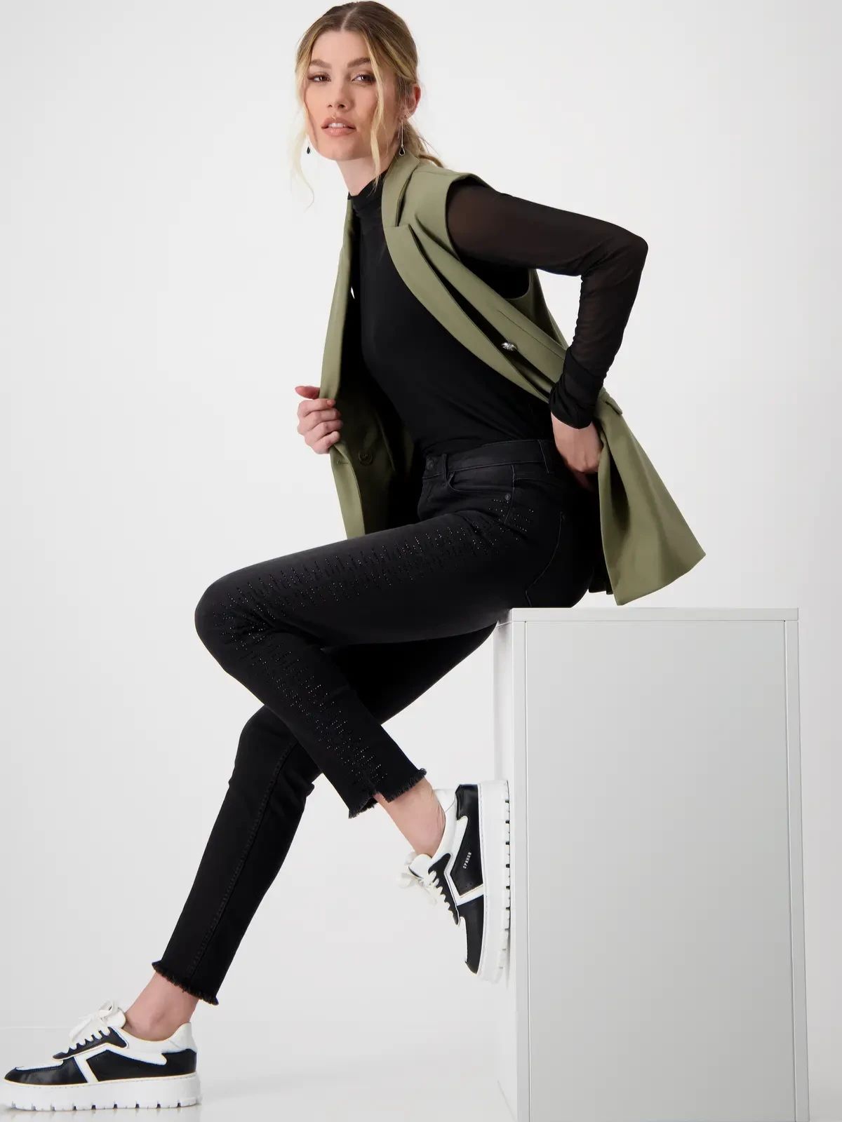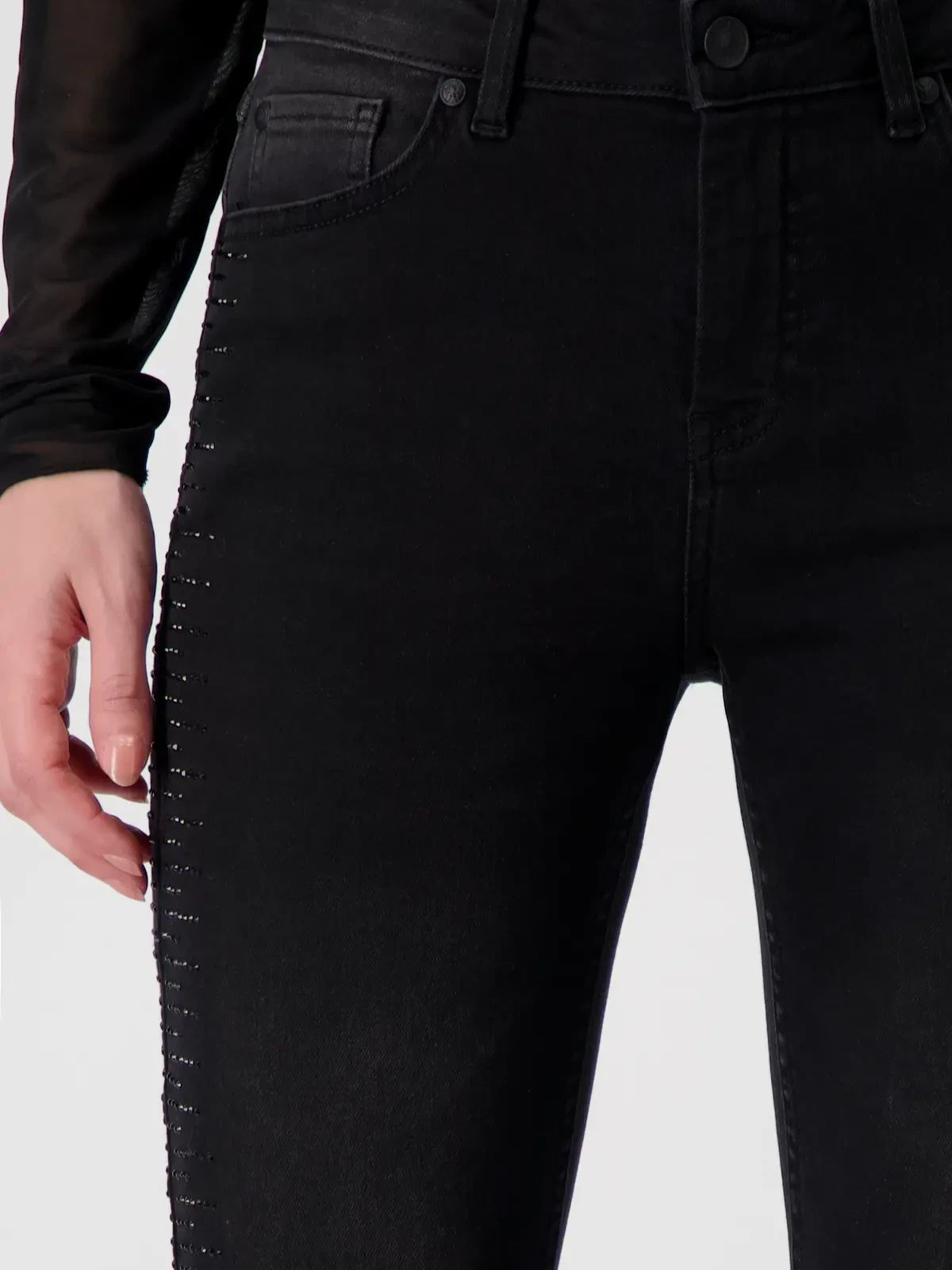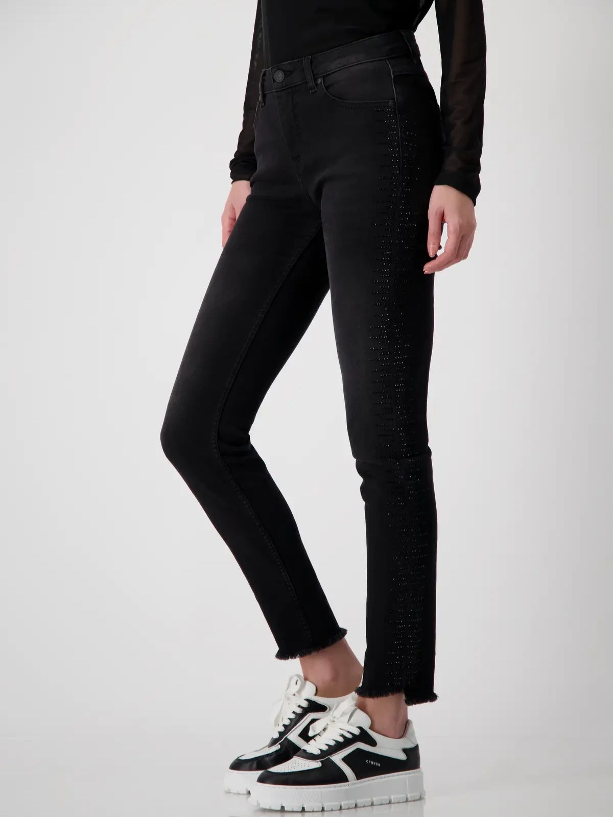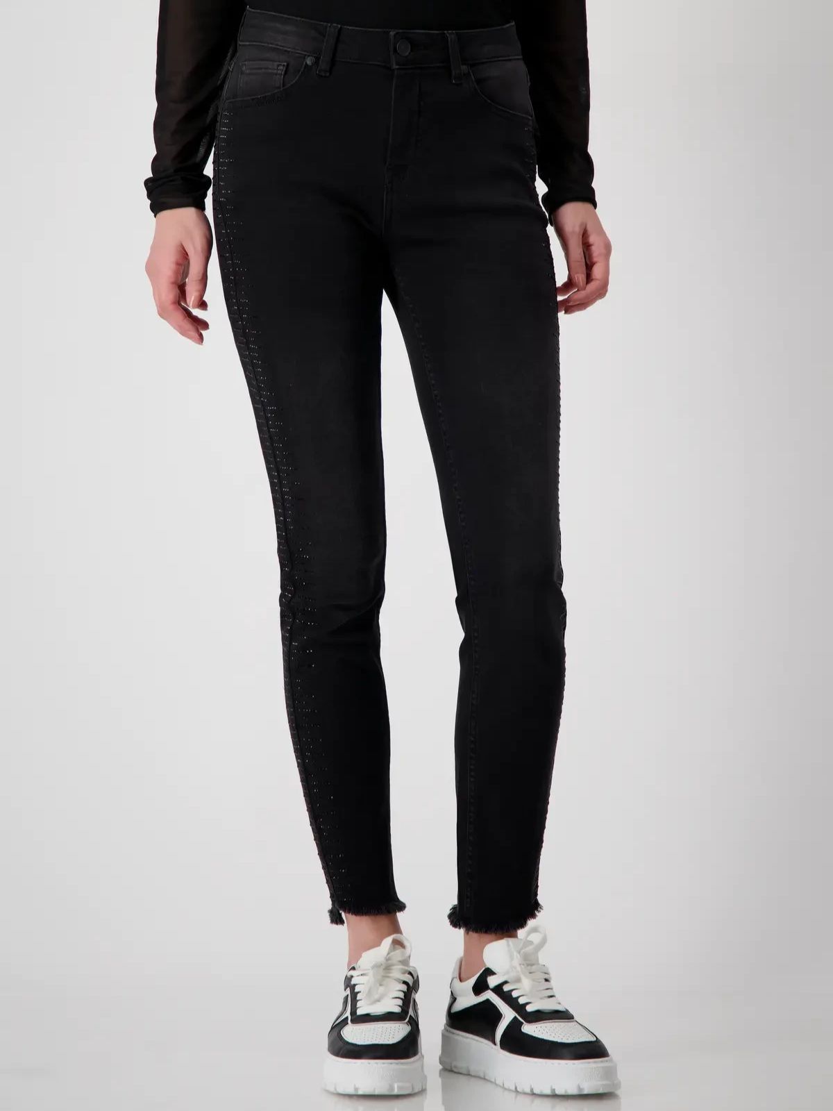 Стильные джинсы со стразами и бахромой немецкого бренда Monari.