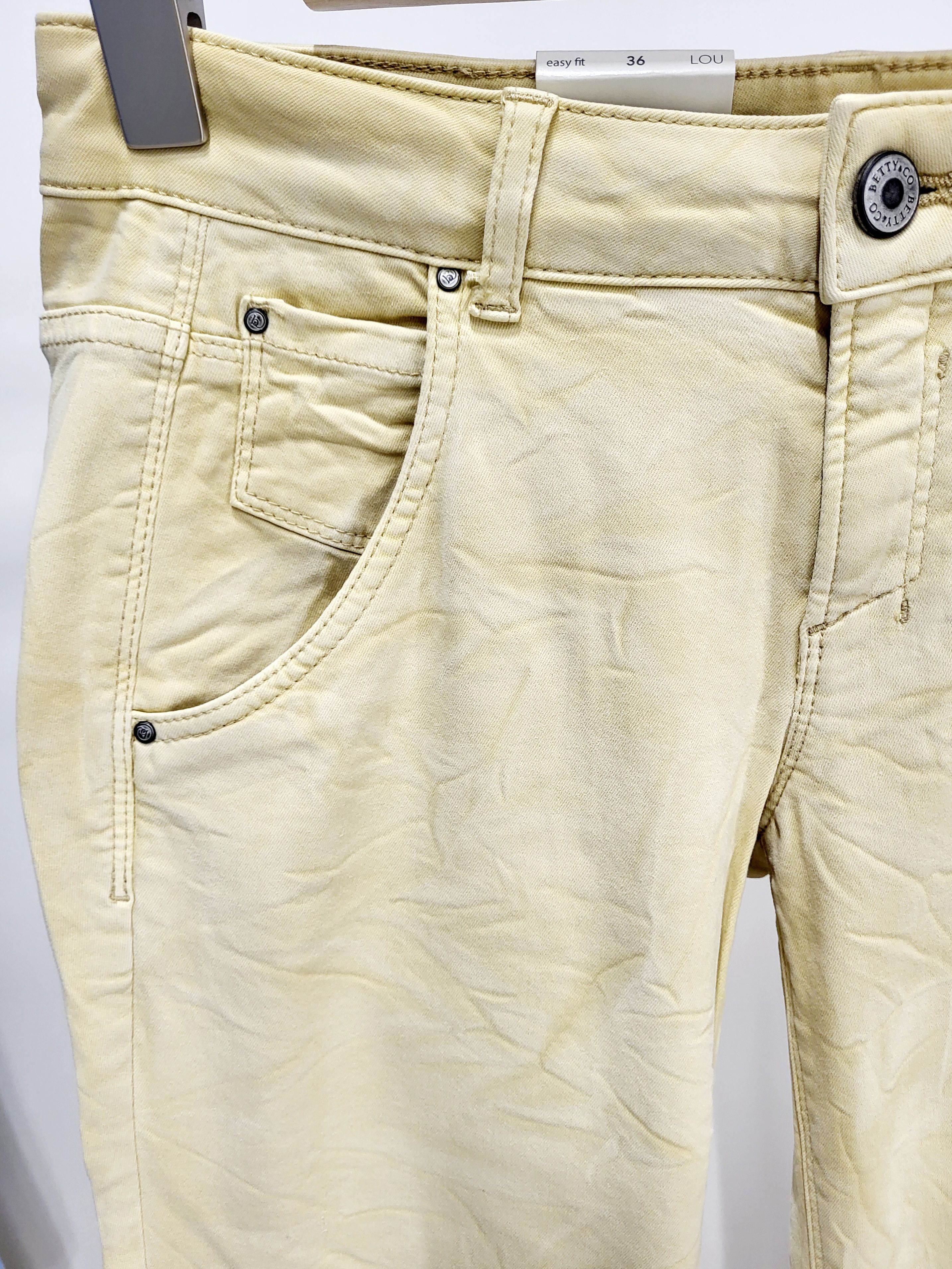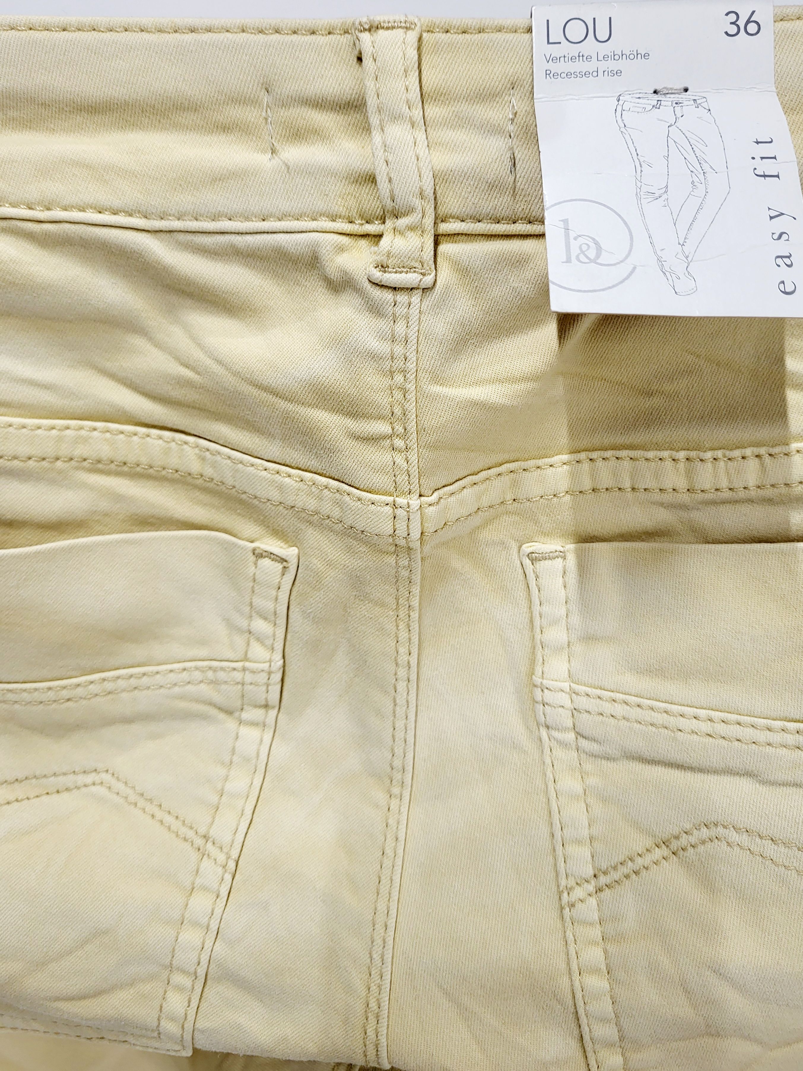 Джинсы женские зауженные пастельного светло-желтого оттенка с легким эффектом размытости немецкого бренда Betty&Co. Цвет: светло-желтый. Бренд: Betty&Co. Страна бренда: Германия. Зауженная модель. Эластичная ткань. Заниженная линия талии. Карманы боковые косые. Карманы накладные задние. Шлёвки для ремня. Страна производства: Турция. Состав материала: 64% хлопок, 33% вискоза, 3% эластан. Рекомендации по уходу: Деликатная стирка при 30 градусах. Не отбеливать. Не отжимать. Гладить на минимальном температурном режиме. Химчистка запрещена.