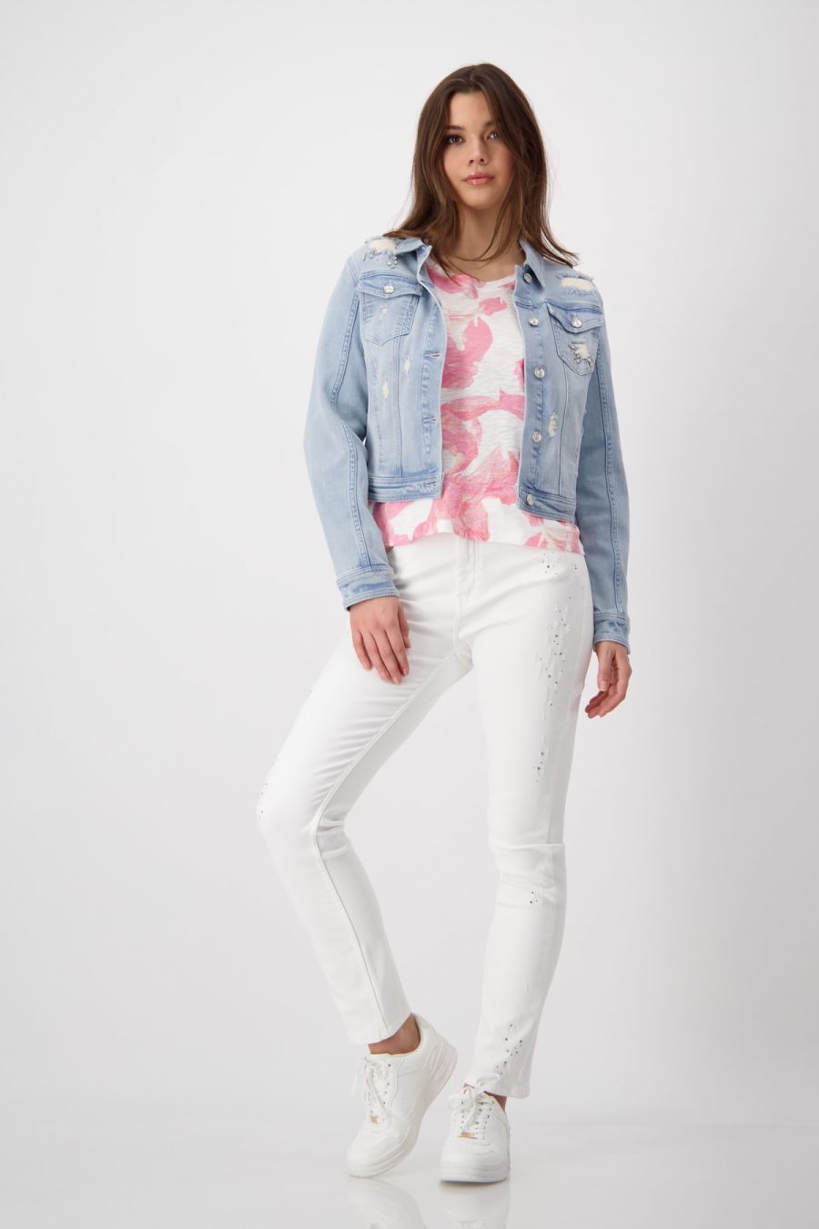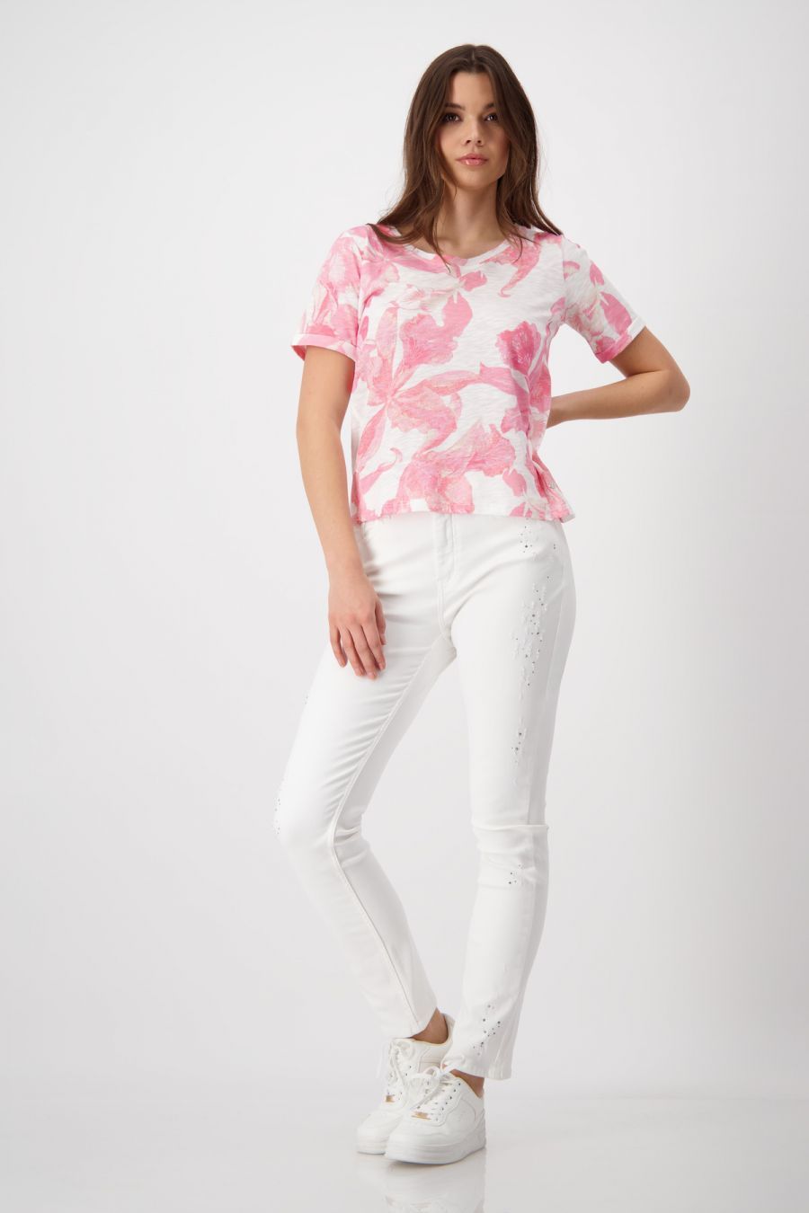 Футболка из тонкого хлопка и модала со стильным цветочным принтом немецкого бренда Monari.
