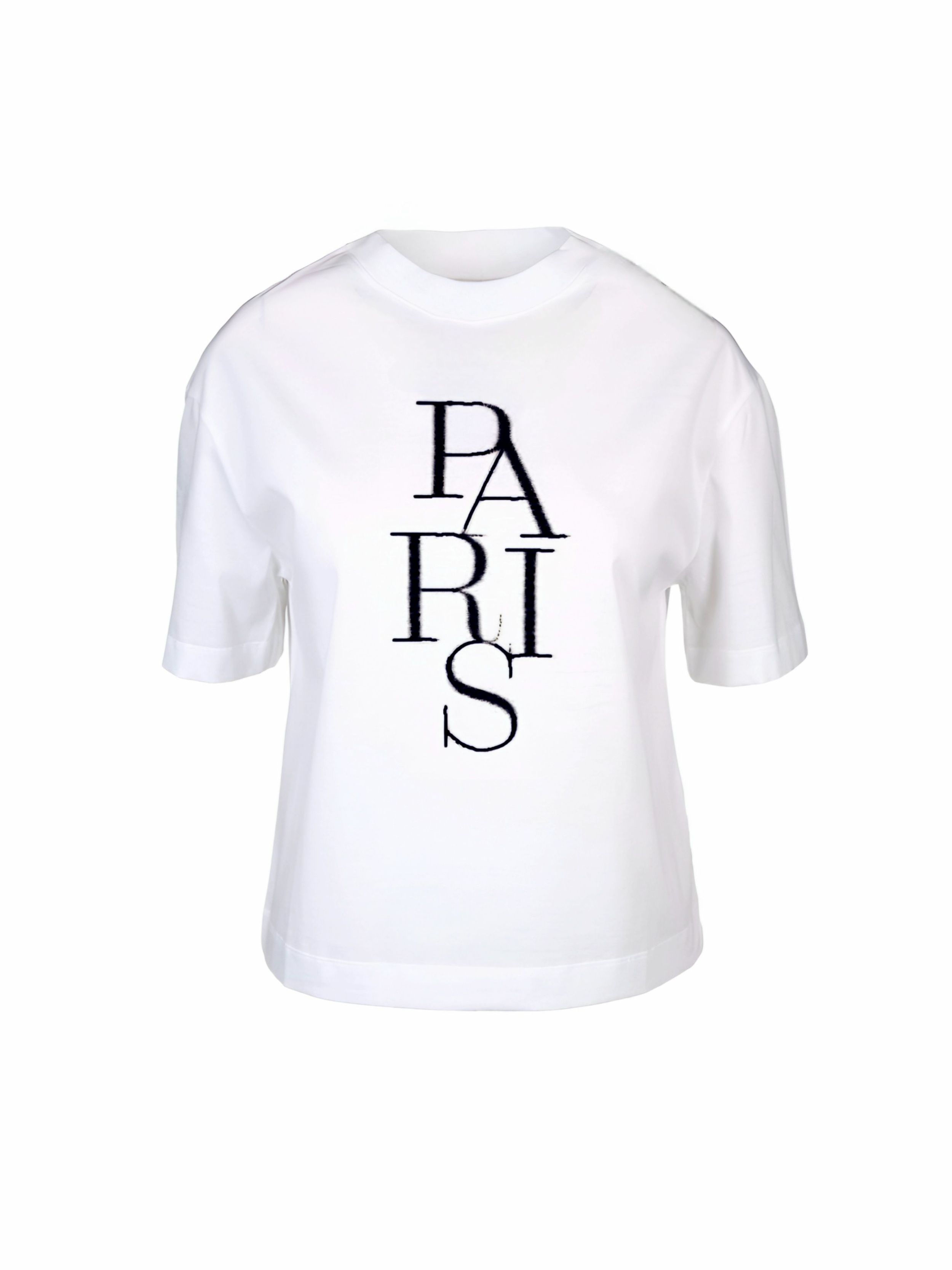 Белая базовая укороченная футболка с надписью "PARIS" немецкого бренда Rich&Royal.