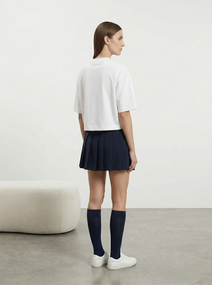 У футболки свободный укороченный крой и приятная по фактуре ткань.