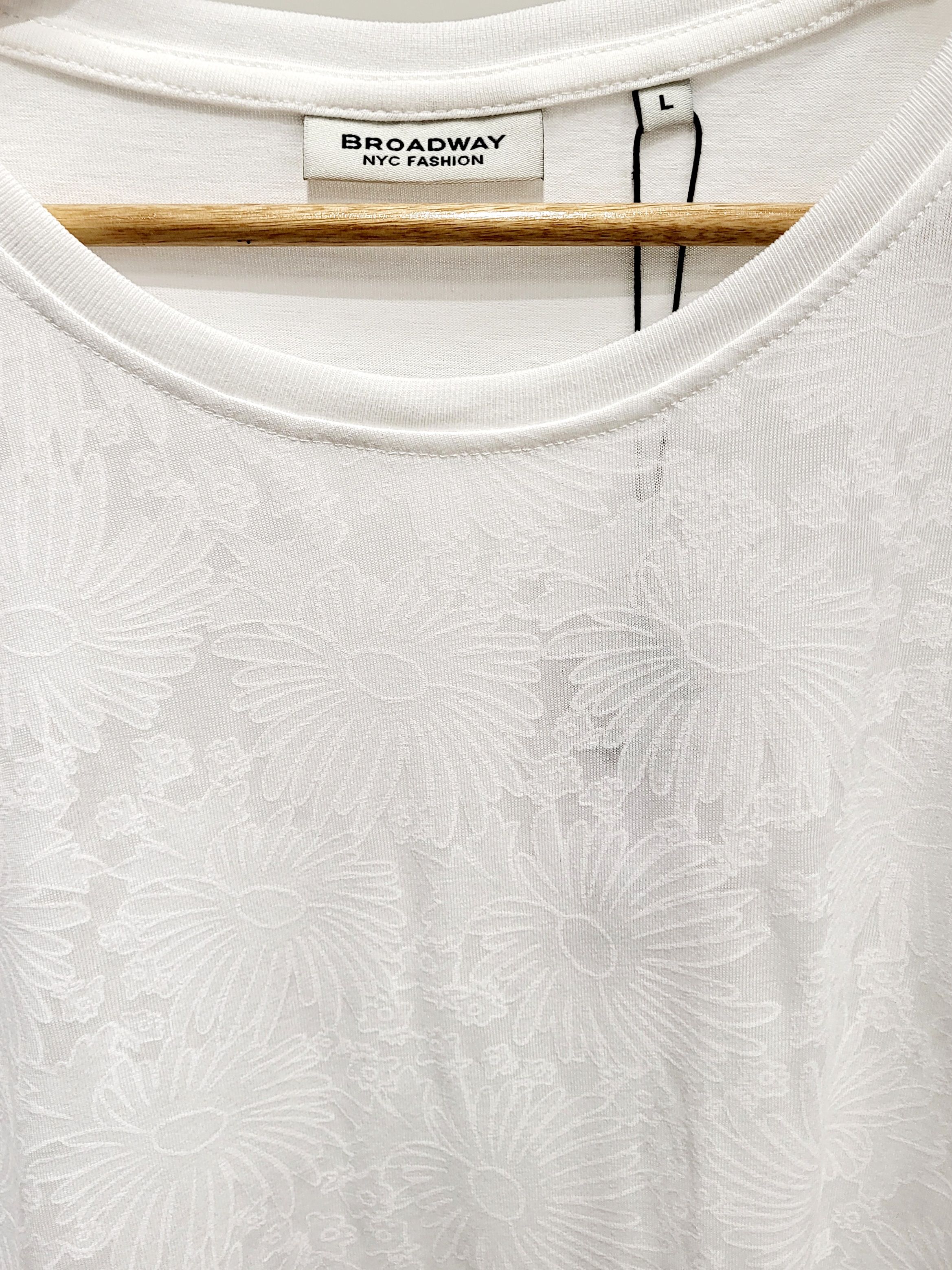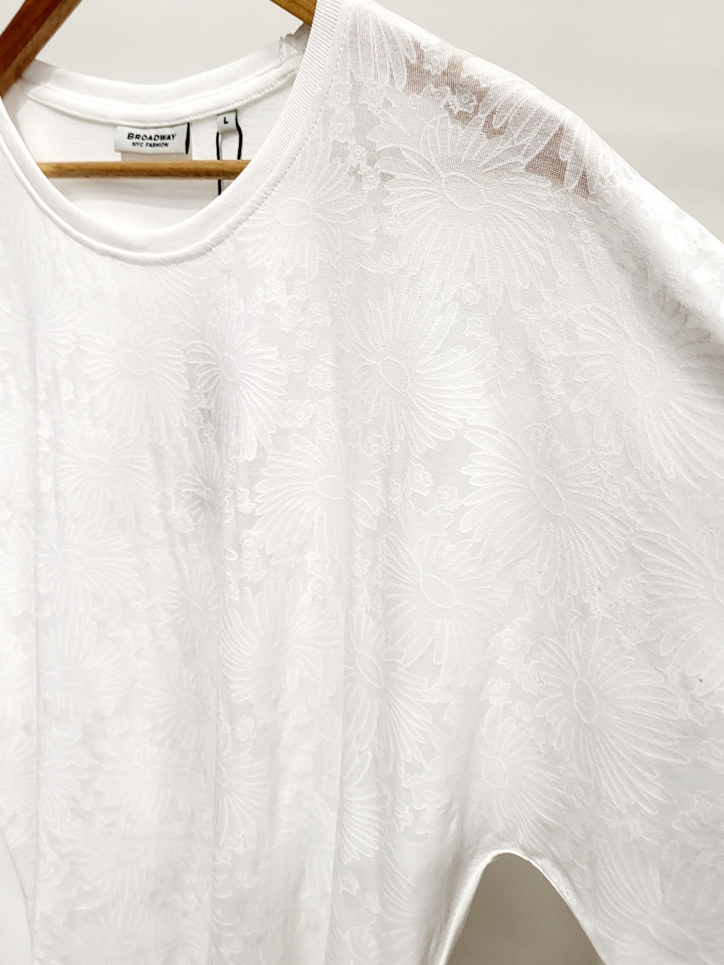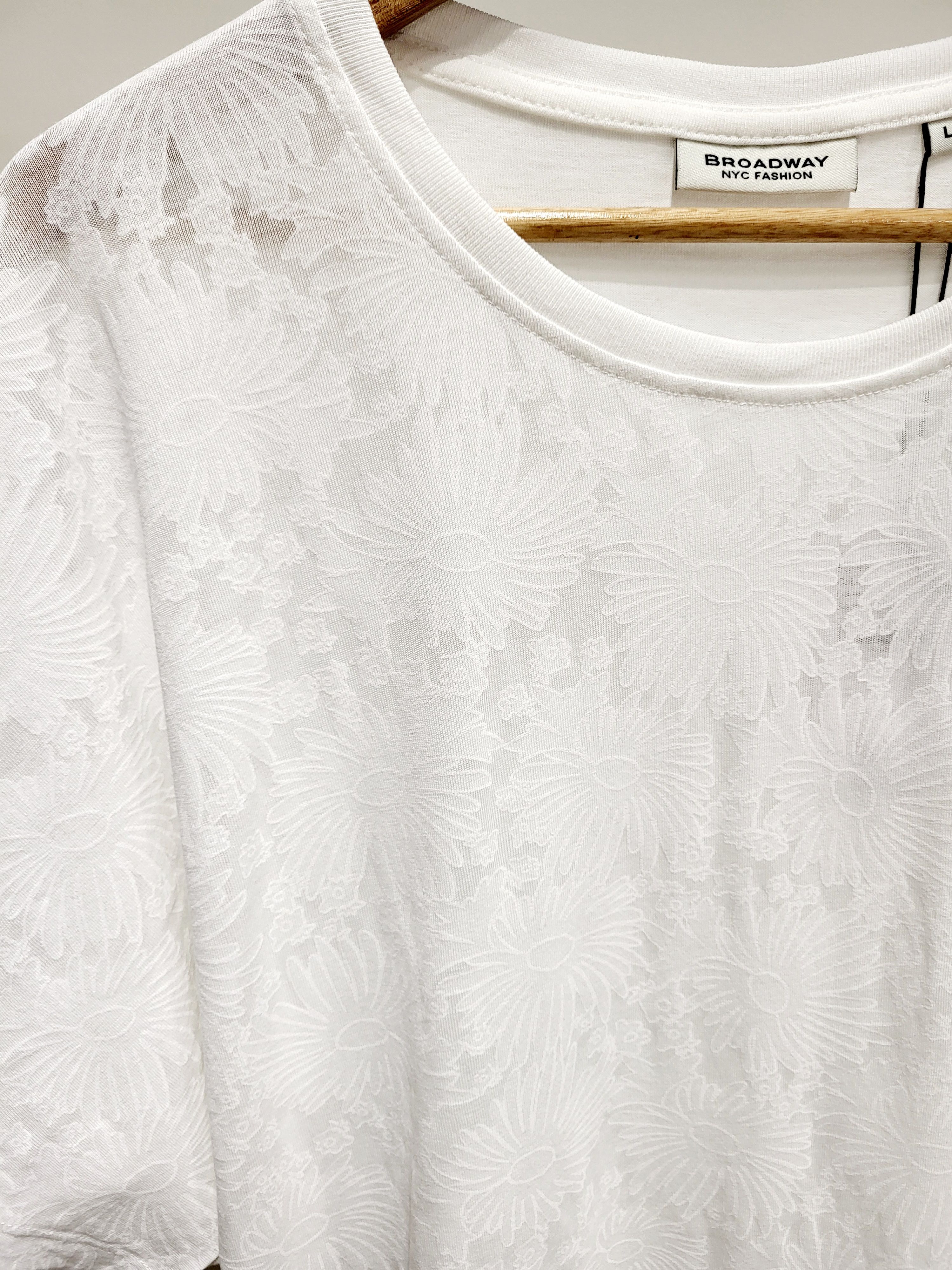Футболка женская с однотонным ажурным флористичеким принтом на передней части изделия немецкого бренда Broadway NYC Fashion.
