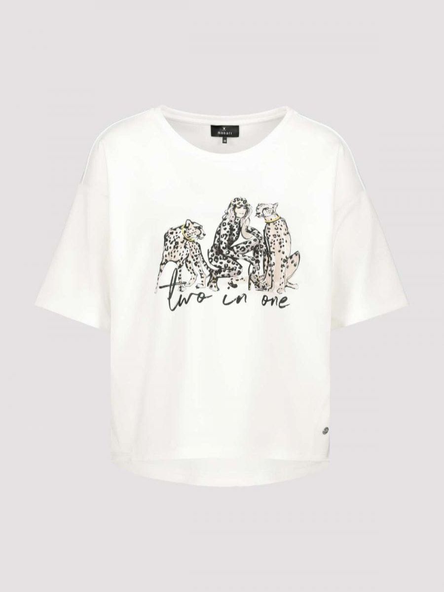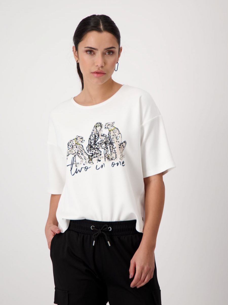 Стильная женская футболка, украшенная анималистическим принтом, немецкого бренда Monari.