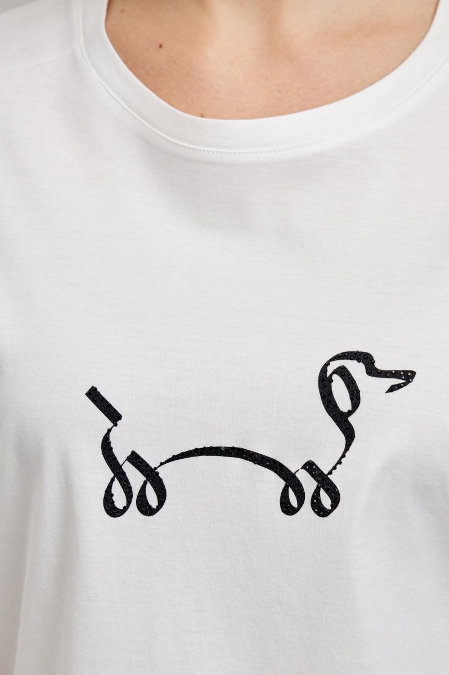 Футболка женская из 100% хлопка с принтом «такса» со стразами немецкого бренда BULMER.