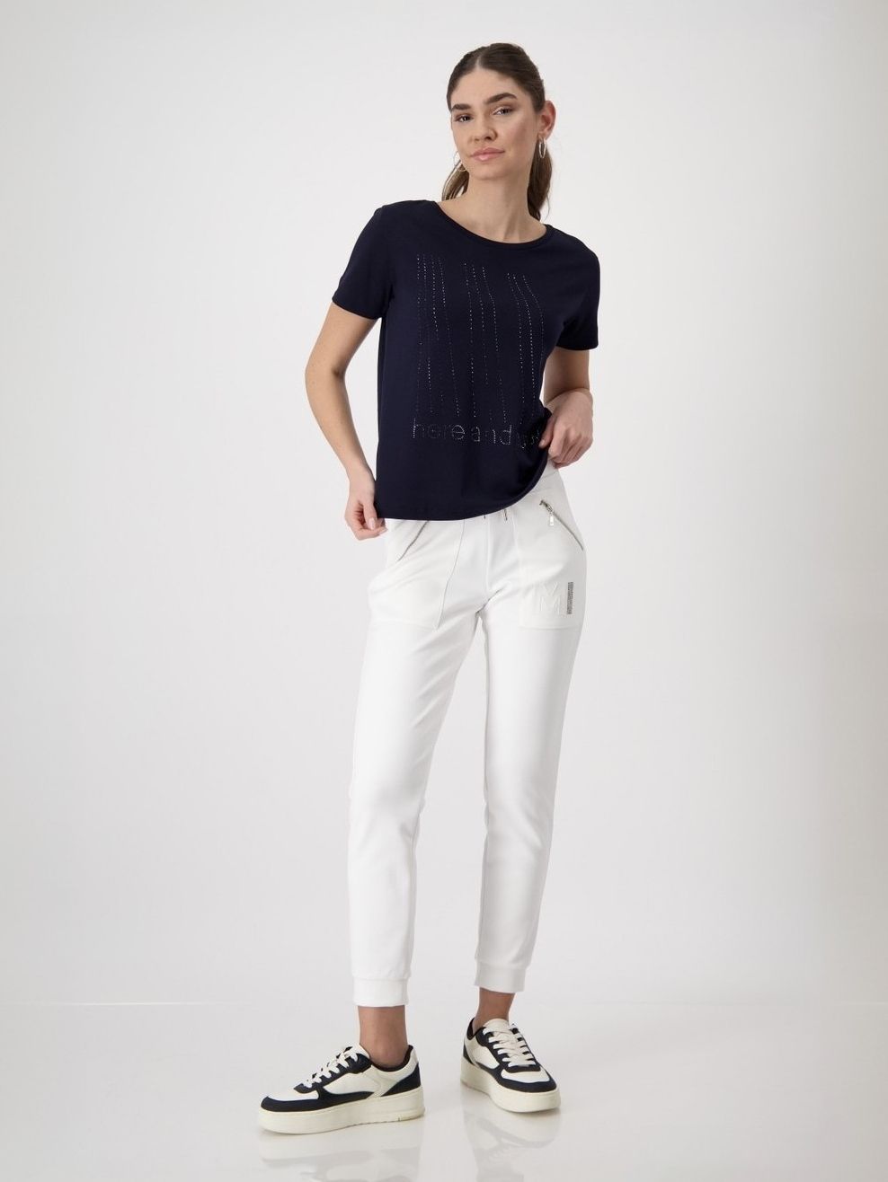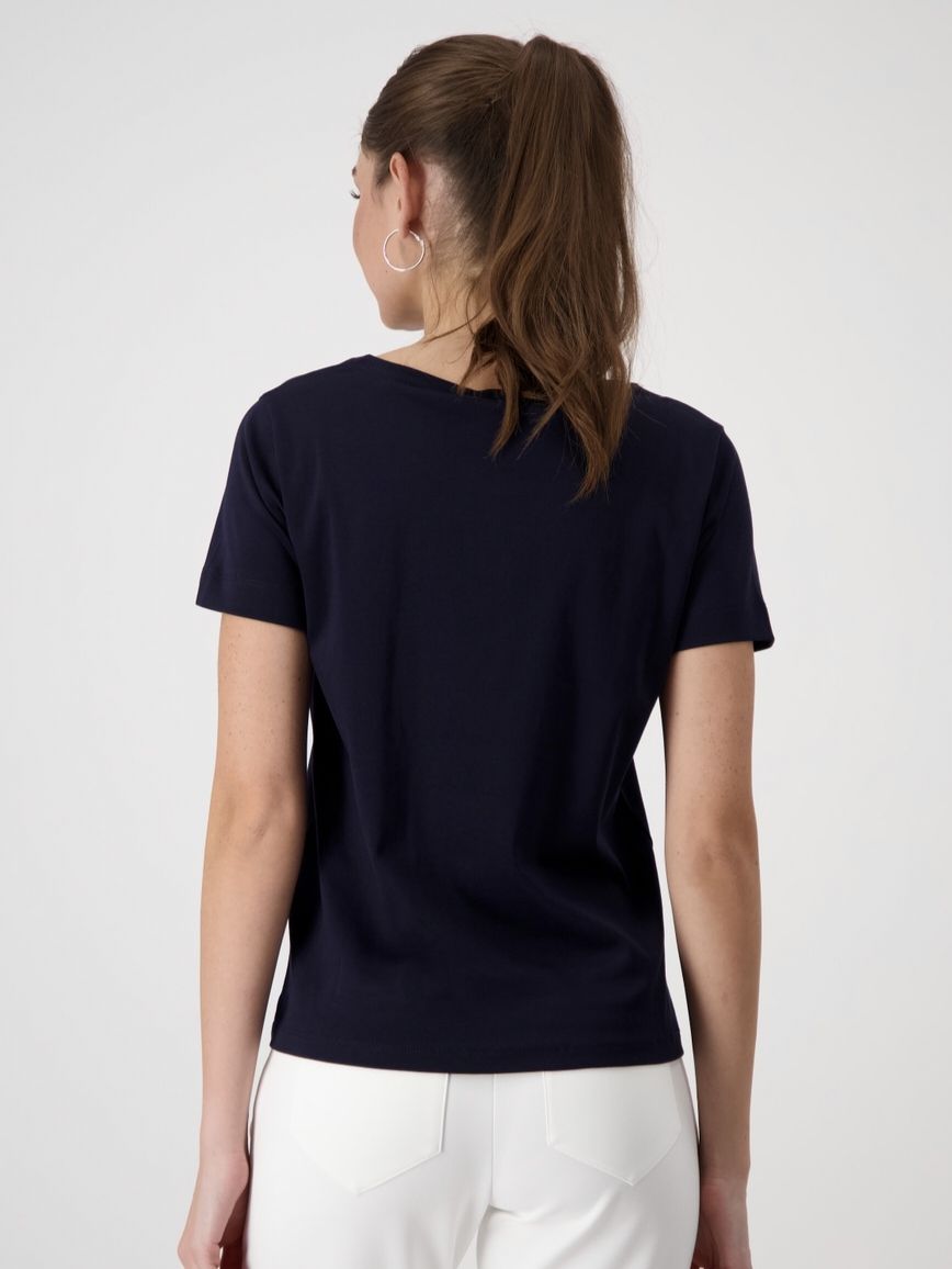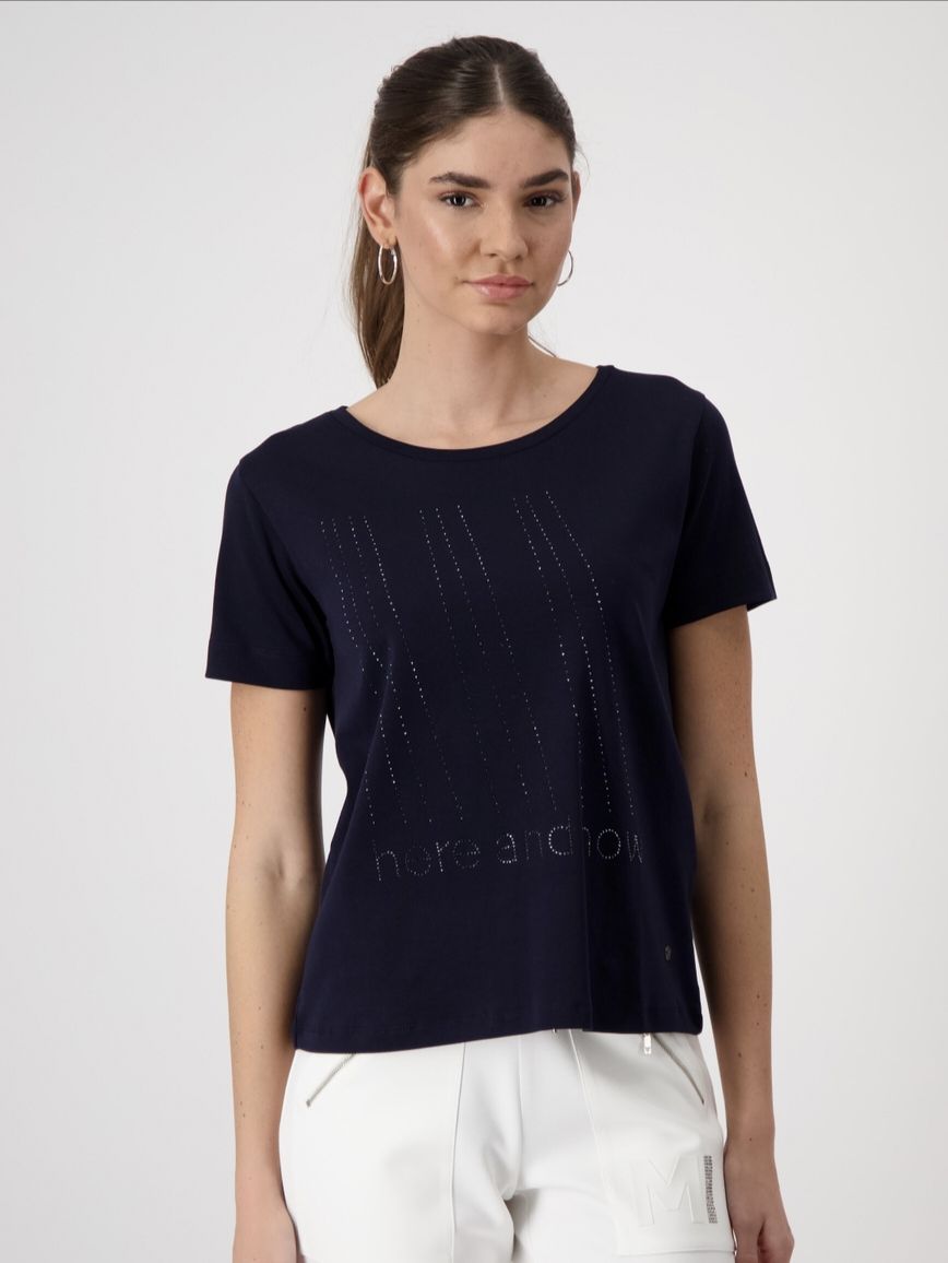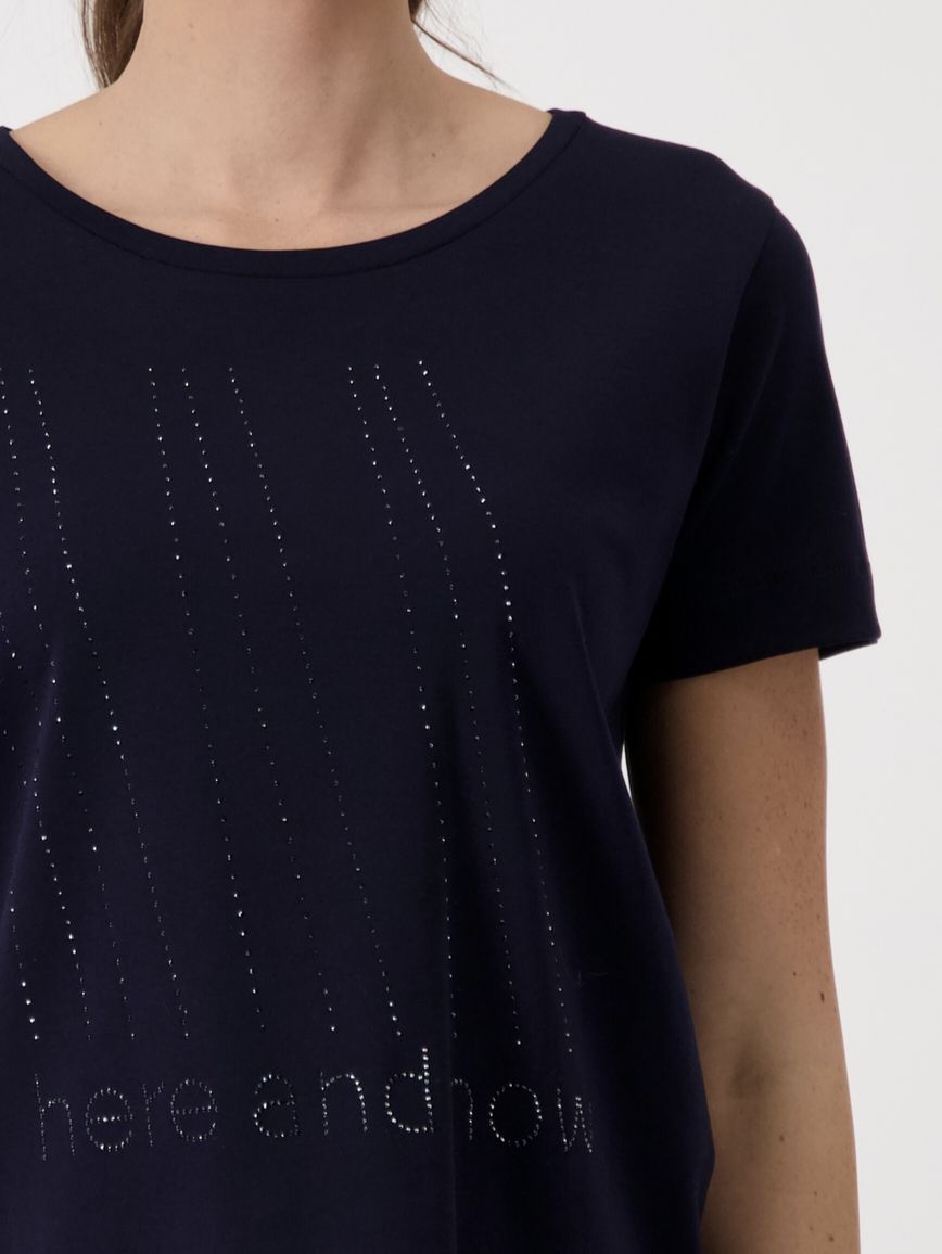 Футболка женская трикотажная с абстрактным принтом и декором из страз немецкого бренда Rabe.
