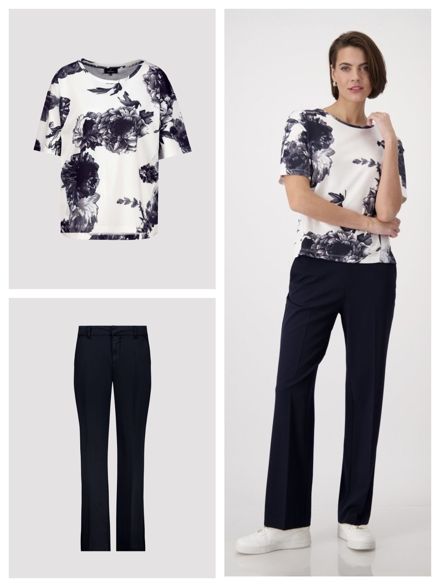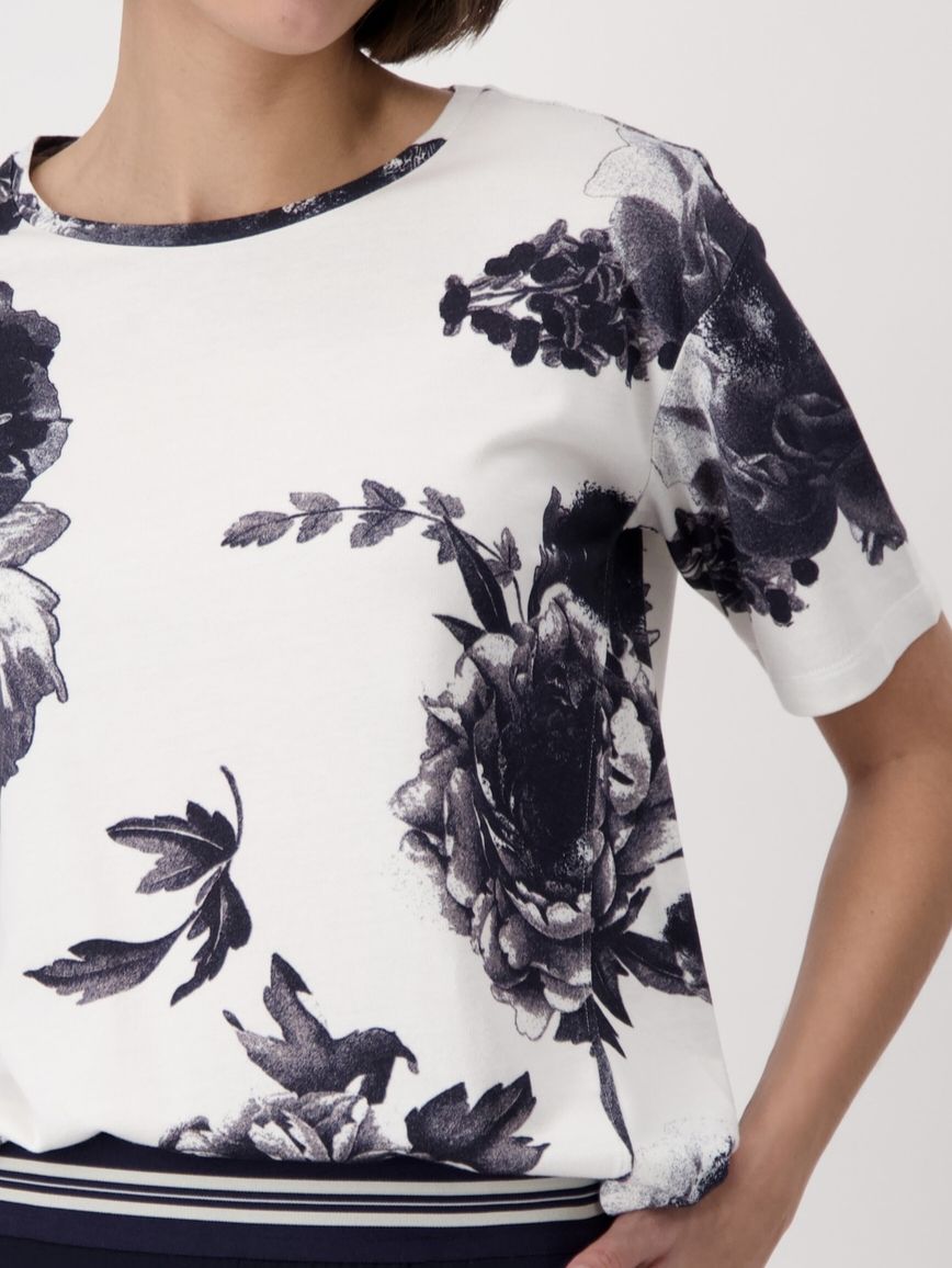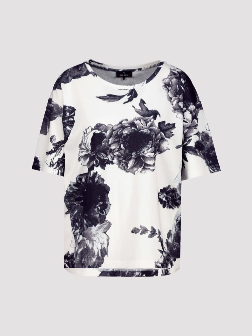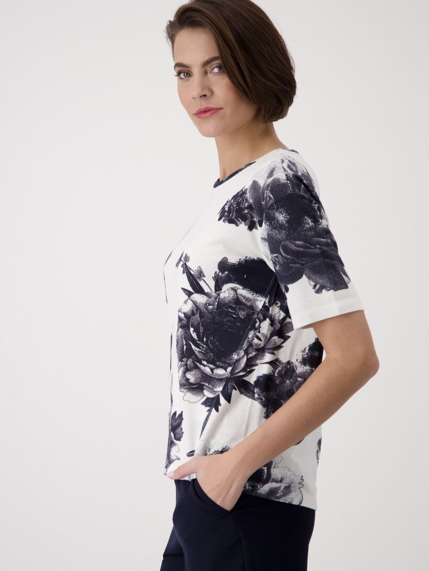 Футболка женская с цветочным рисунком из коллекции весна-лето 2025 немецкого бренда Monari.