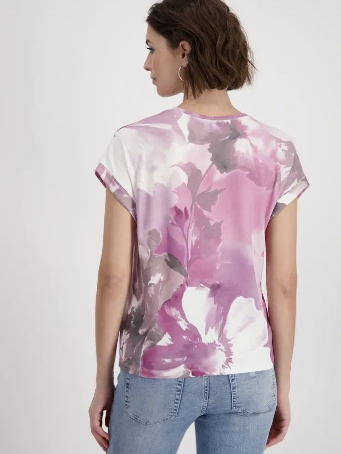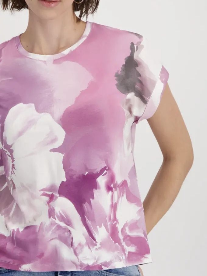 Эта футболка немецкого бренда Monari из струящейся вискозы отличается эластичным материалом и великолепным цветочным узором по всему телу.