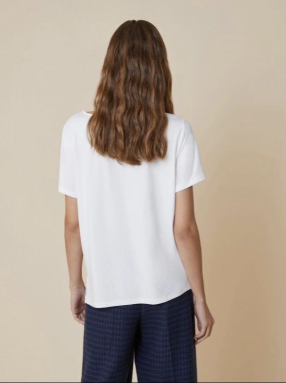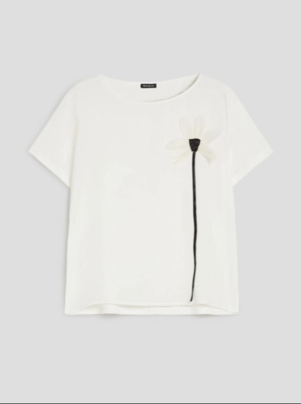 Футболка женская из текучего джерси с крепдешиновой отделкой спереди итальянского бренда Pennyblack.