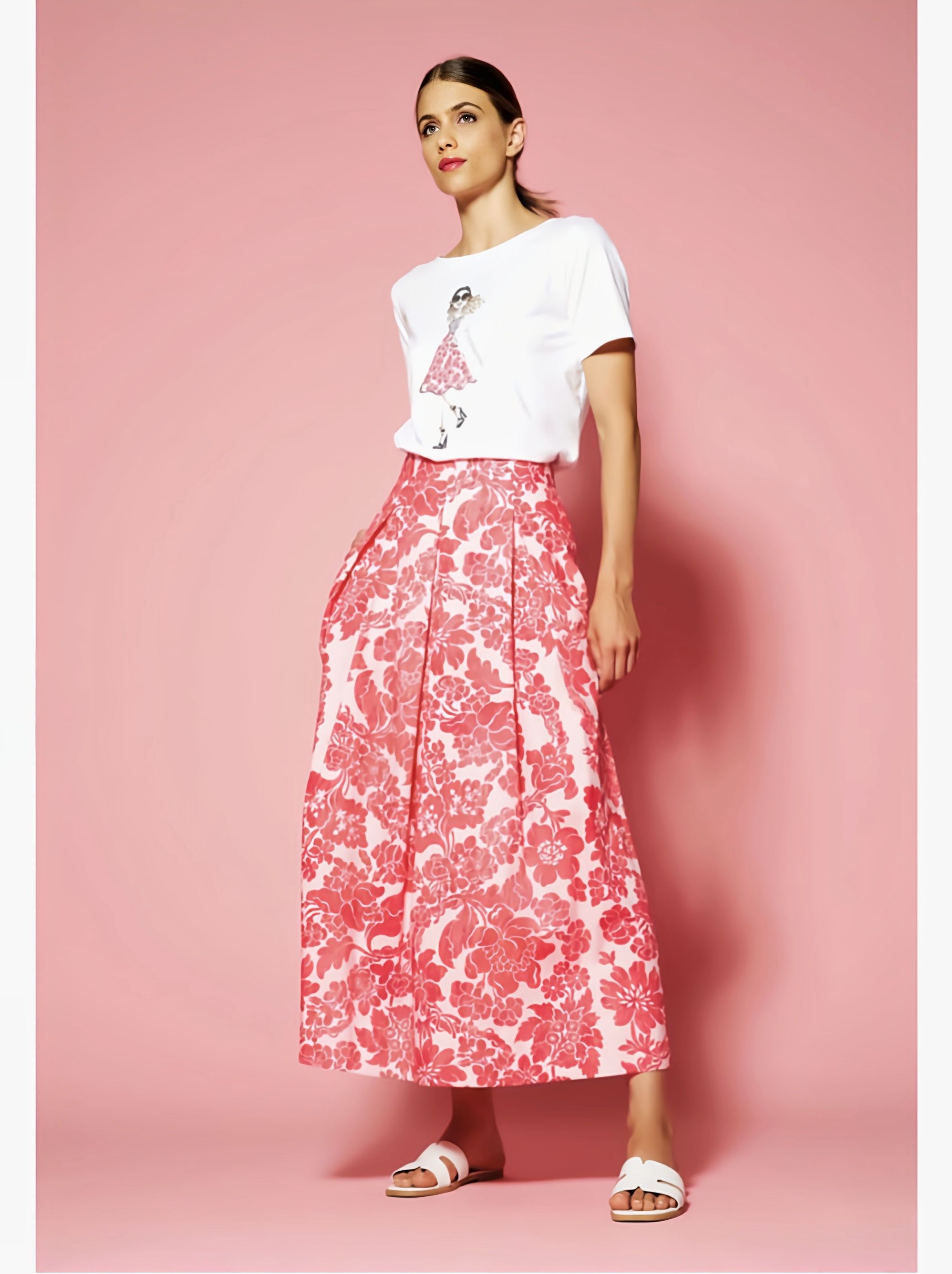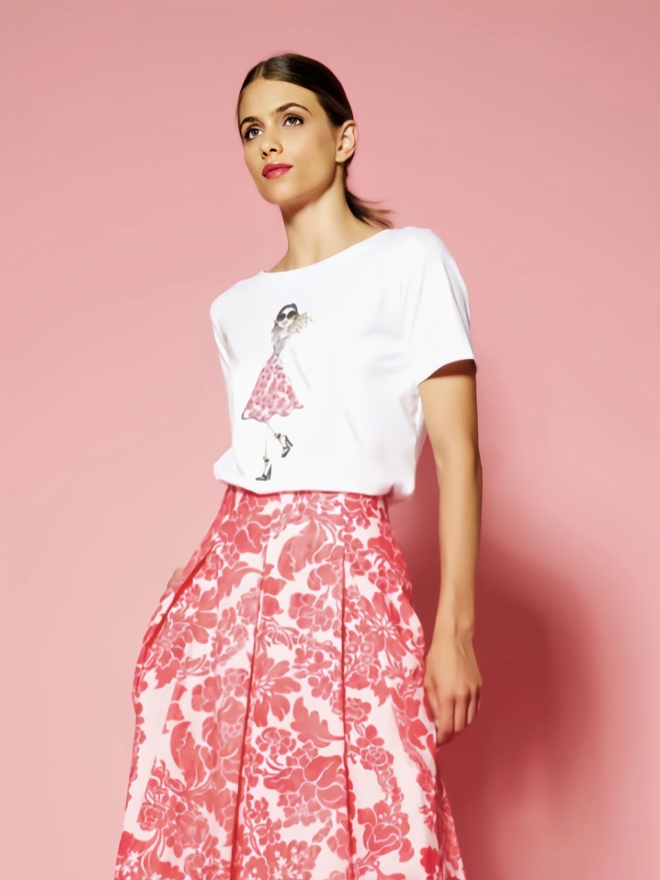 Футболка женская белого цвета с принтом "девочка в розовом платье" со стразами итальянского бренда Donne da Sogno.