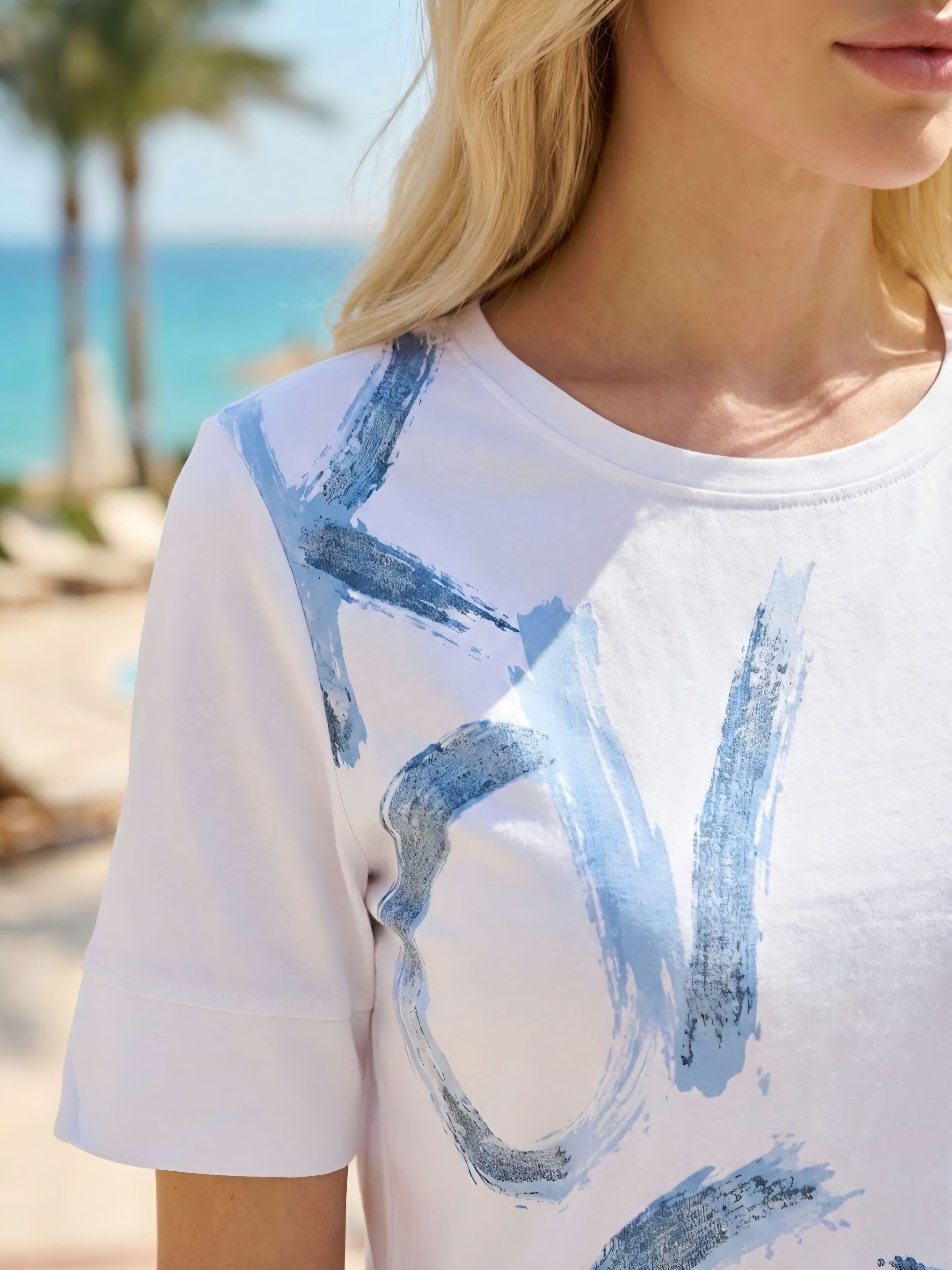 Футболка (джемпер) женская трикотажная с текстовым принтом и стразами итальянского бренда Franco Vello.