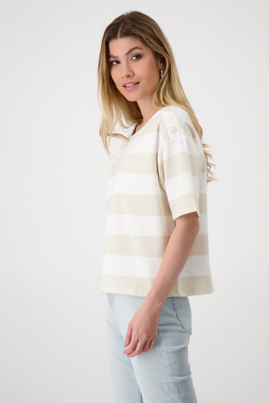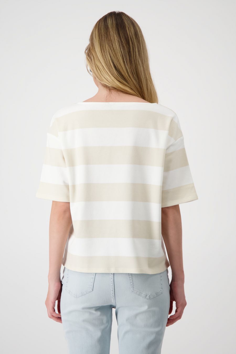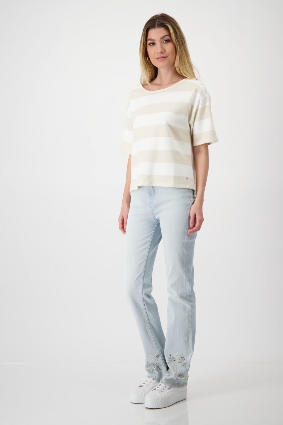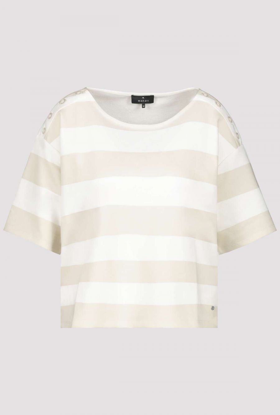 Полосатая футболка из высококачественной смеси хлопка с декоративной пуговицами на плече из новой коллекции весна-лето 2024 немецкого бренда Monari. Цвет: белый/ бежевый (542 light sand striped). Бренд: Monari. Страна бренда: Германия. Коллекция: весна-лето 2024. Высококачественная смесь хлопка. В полоску. Декоративные пуговицы. Регулярная посадка. Спущенное плечо. Округлый вырез. Рукав 1/2. Рост модели 1,79 м, размер 36. Длина 38 размера 56 см. Состав материала: 70% хлопок, 30% полиэстер. Рекомендации по уходу: Специальный щадящий режим (30°C). Не отбеливать. Не сушить в стиральной машине. Гладить с максимальной температурой 110 °C (гладить с паром нельзя). Не подвергать химической чистке.