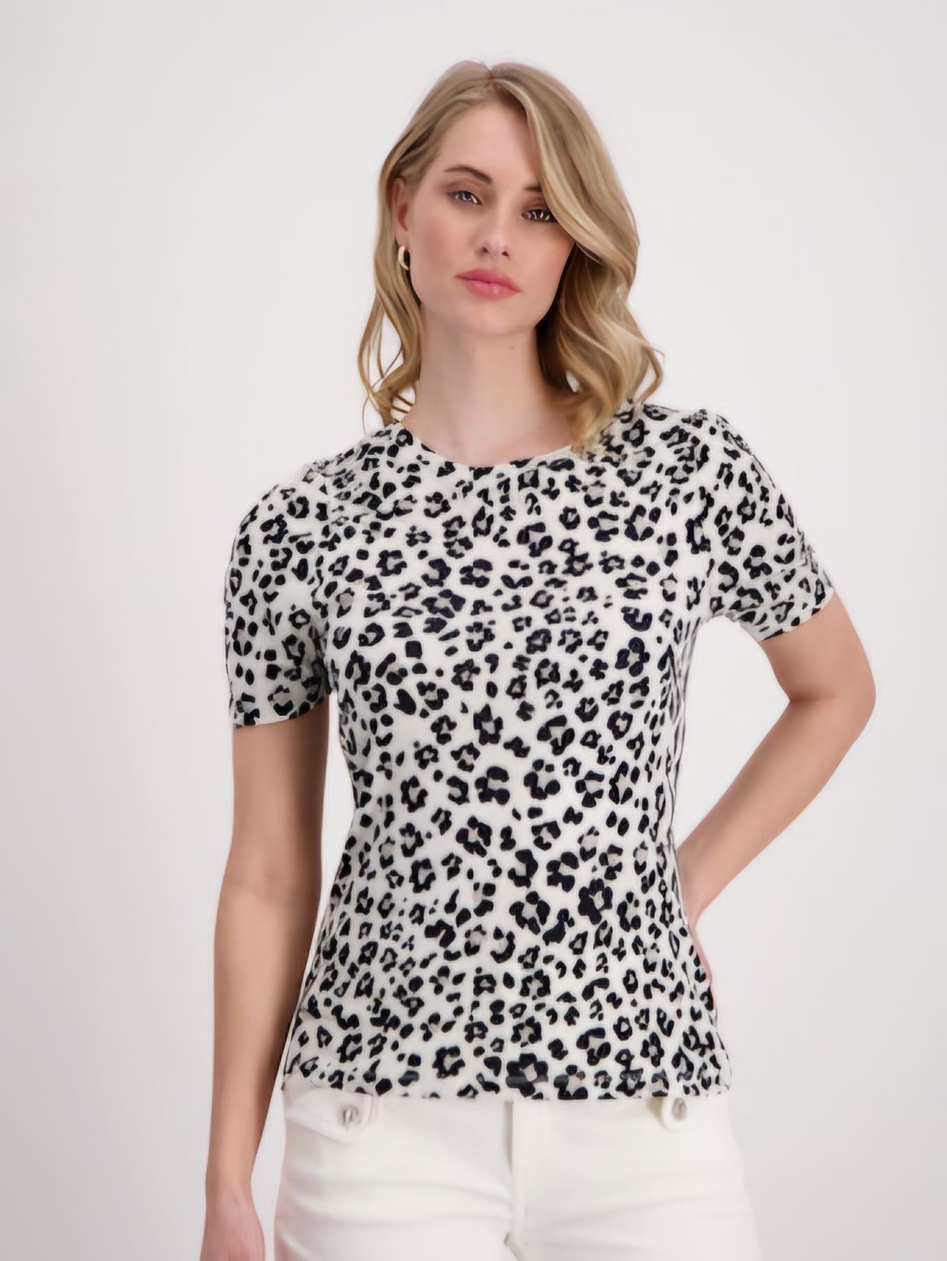 Футболка приталенного кроя с анималистическим принтом из новой коллекции весна-лето 2024 немецкого бренда Monari. Цвет: белый/чёрный. Принт: анималистический. Бренд: Monari. Страна бренда: Германия. Коллекция: весна-лето 2024. Анималистический принт. Приталенная модель. Регулярная посадка. Круглый вырез. Короткий рукав. Рост модели 1,76 м, размер 36. Длина 38 размера 58 см. Состав материала: 48 % модал, 48 % полиэстер, 4 % эластан. Рекомендации по уходу: Специальный щадящий режим (30°C). Не отбеливать. Не сушить в стиральной машине. Гладить с максимальной температурой 110 °C (гладить с паром нельзя). Не подвергать химической чистке. Размер 34: обхват груди: 85 см, длина: 63см. Размер 36: обхват груди: 90 см, длина: 63см. Размер 38: обхват груди: 98 см, длина: 64см. Размер 40: обхват груди: 102 см, длина: 64см. Размер 42: обхват груди: 110 см, длина: 68см. Размер 44: обхват груди: 116 см, длина: 70см. Размер 46: обхват груди: 124 см, длина: 70см.