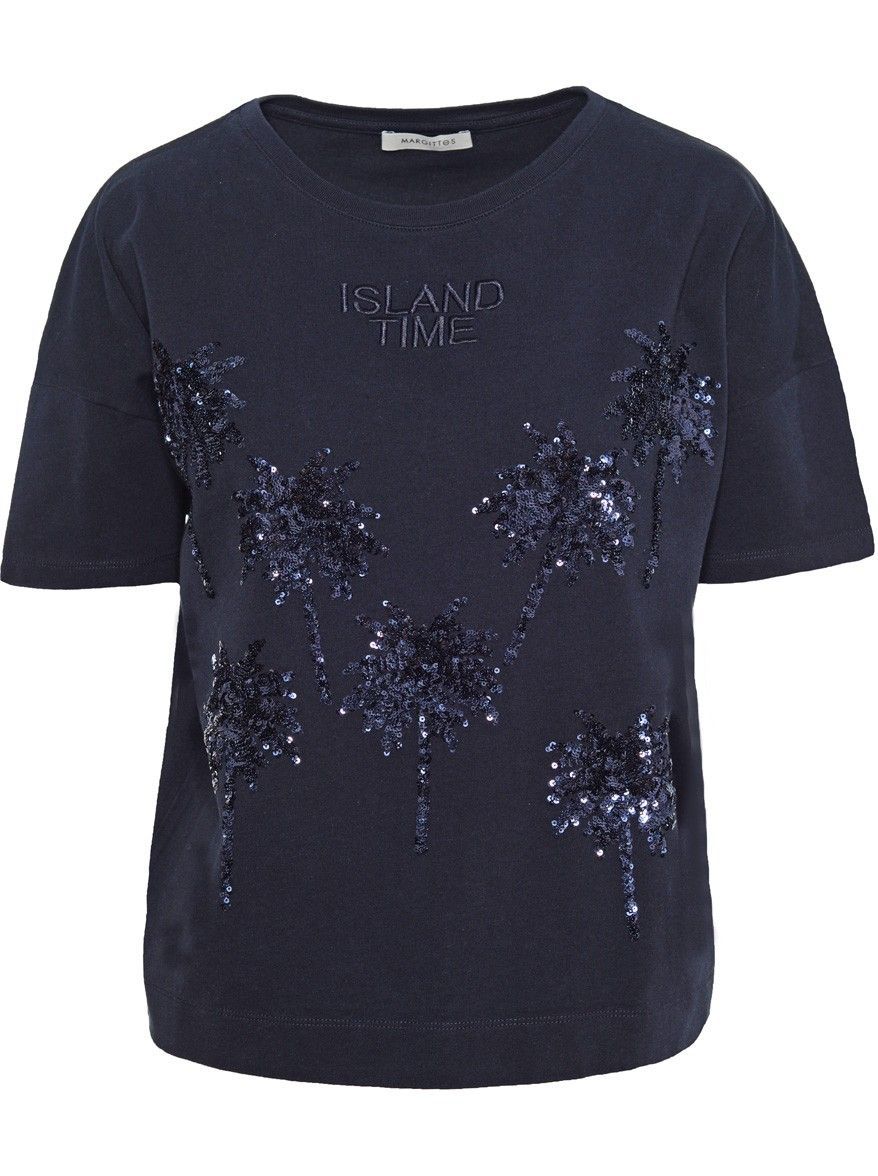 Футболка из хлопка с принтом "пальмы" из пайеток в тон.