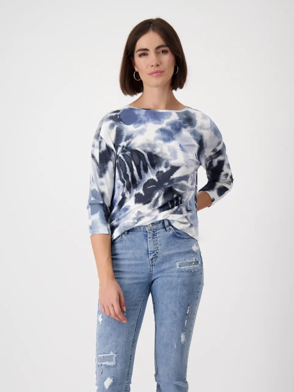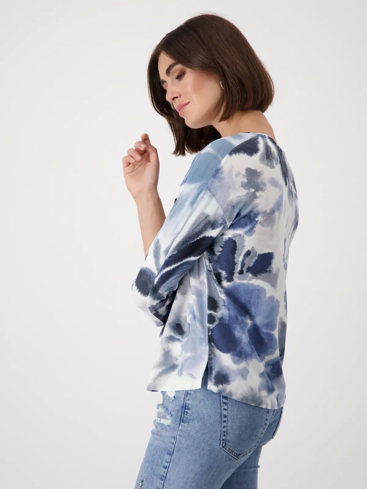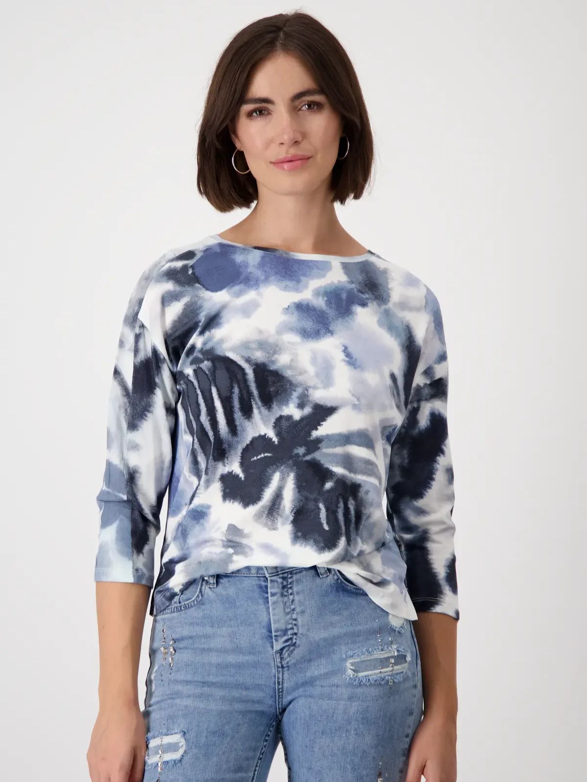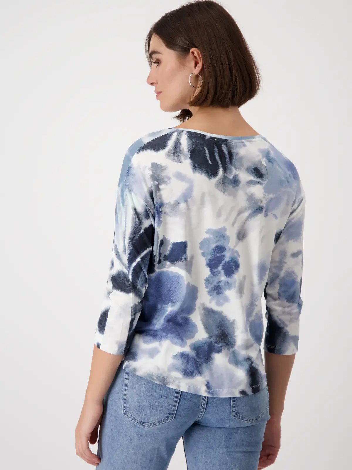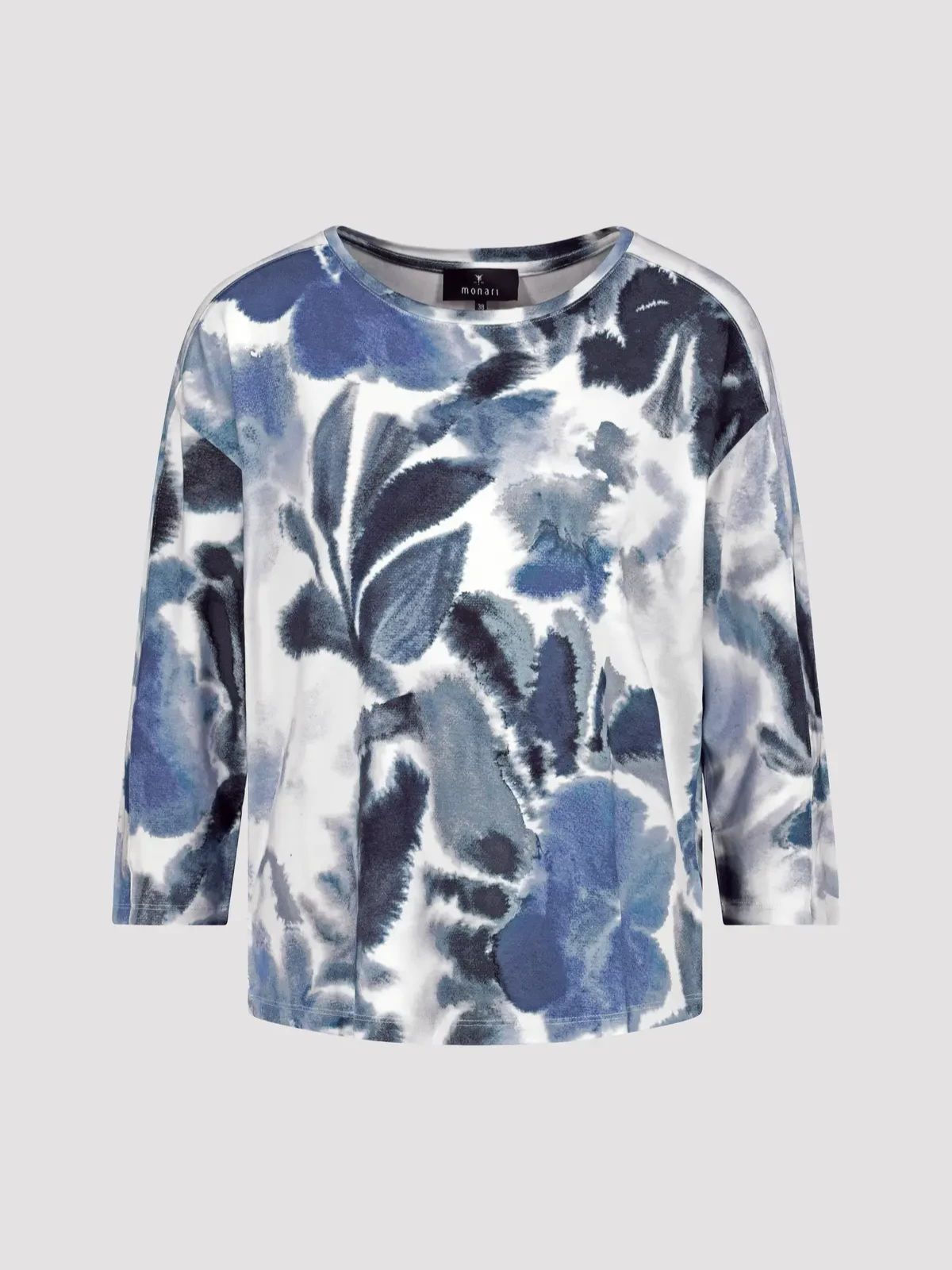 Женский лонглив (футболка) из эластичной вискозы с цветочным узором и рукавами 3/4 немецкого бренда Monari.