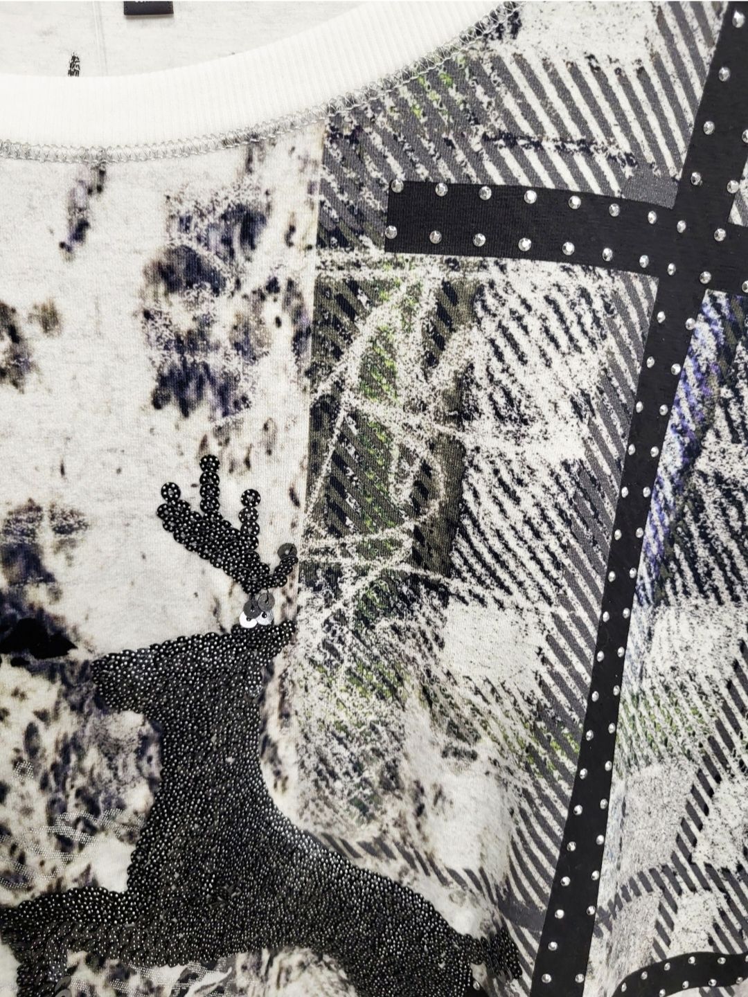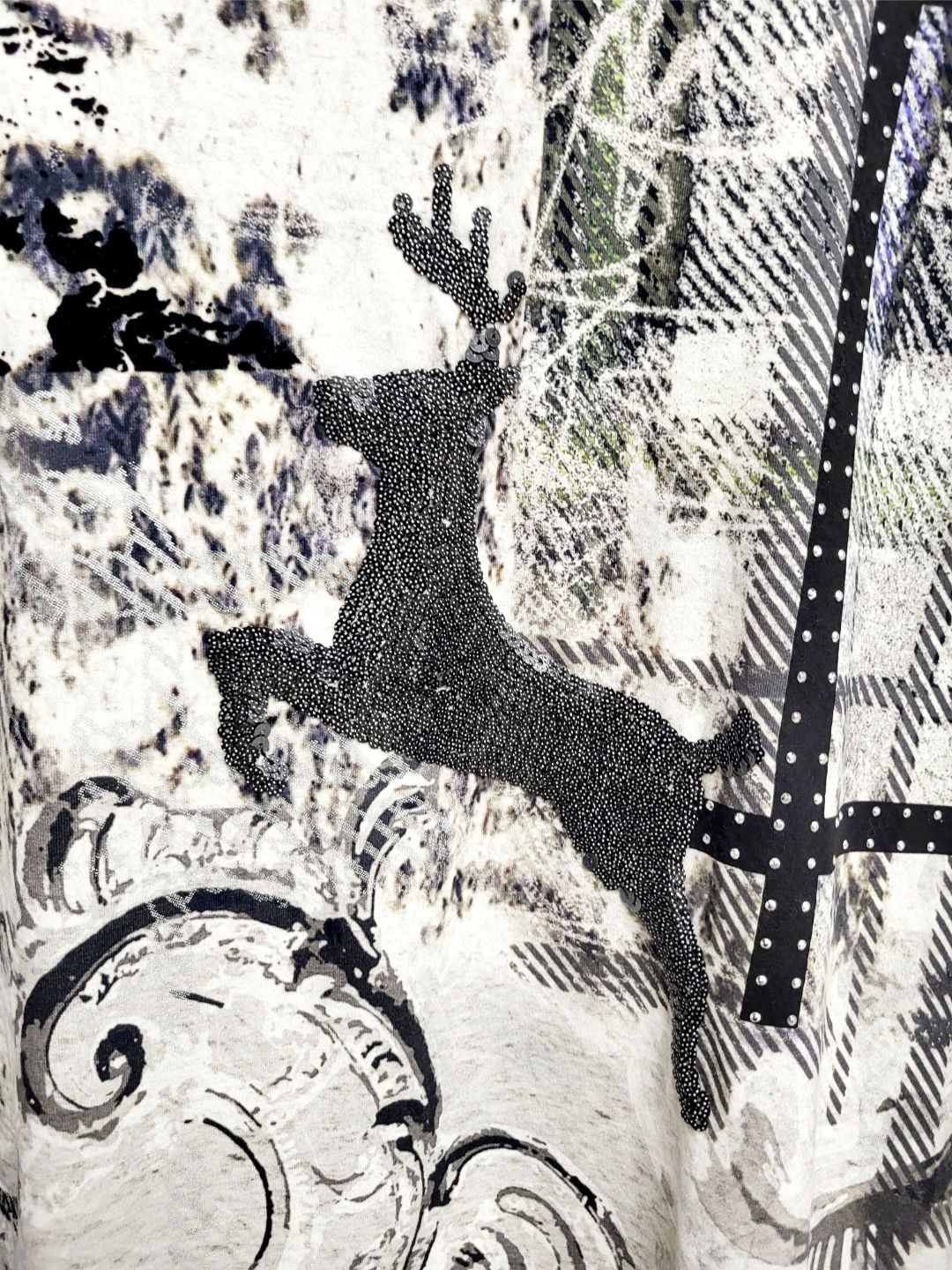 Аппликация в виде оленя из металлизированных пайеток.