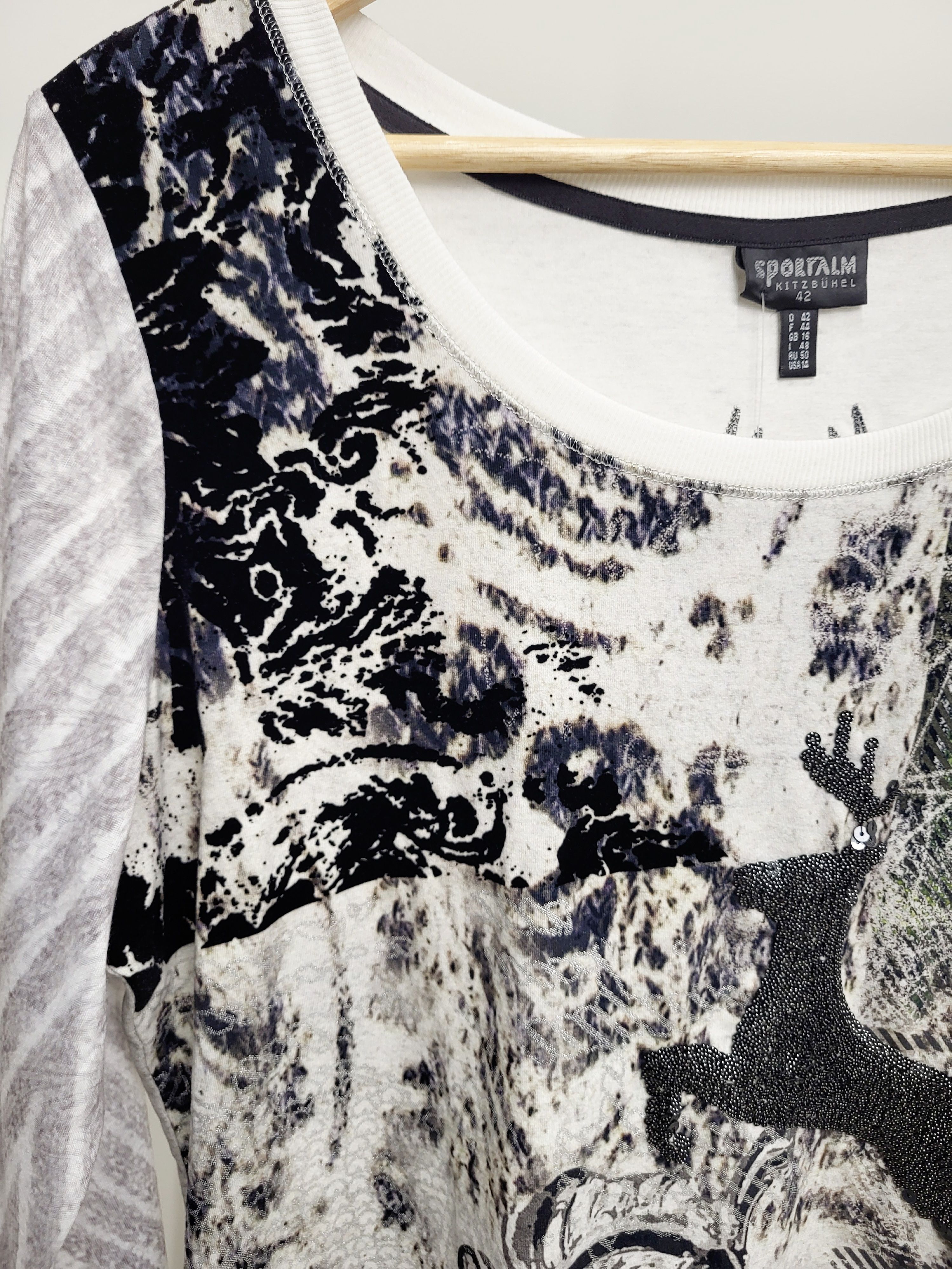 Трикотажный лонгслив австрийского бренда Sportalm в "альпийском" стиле.