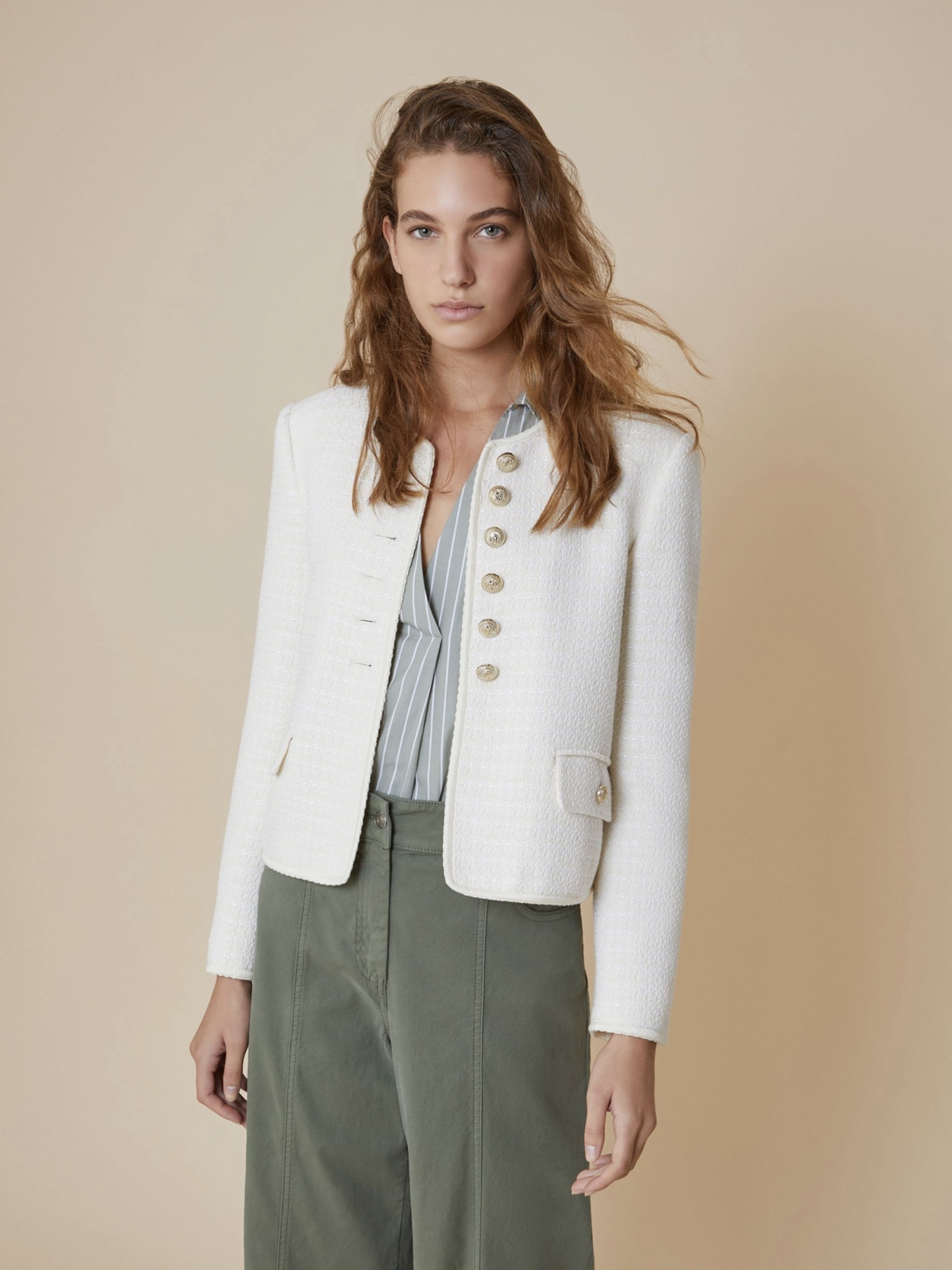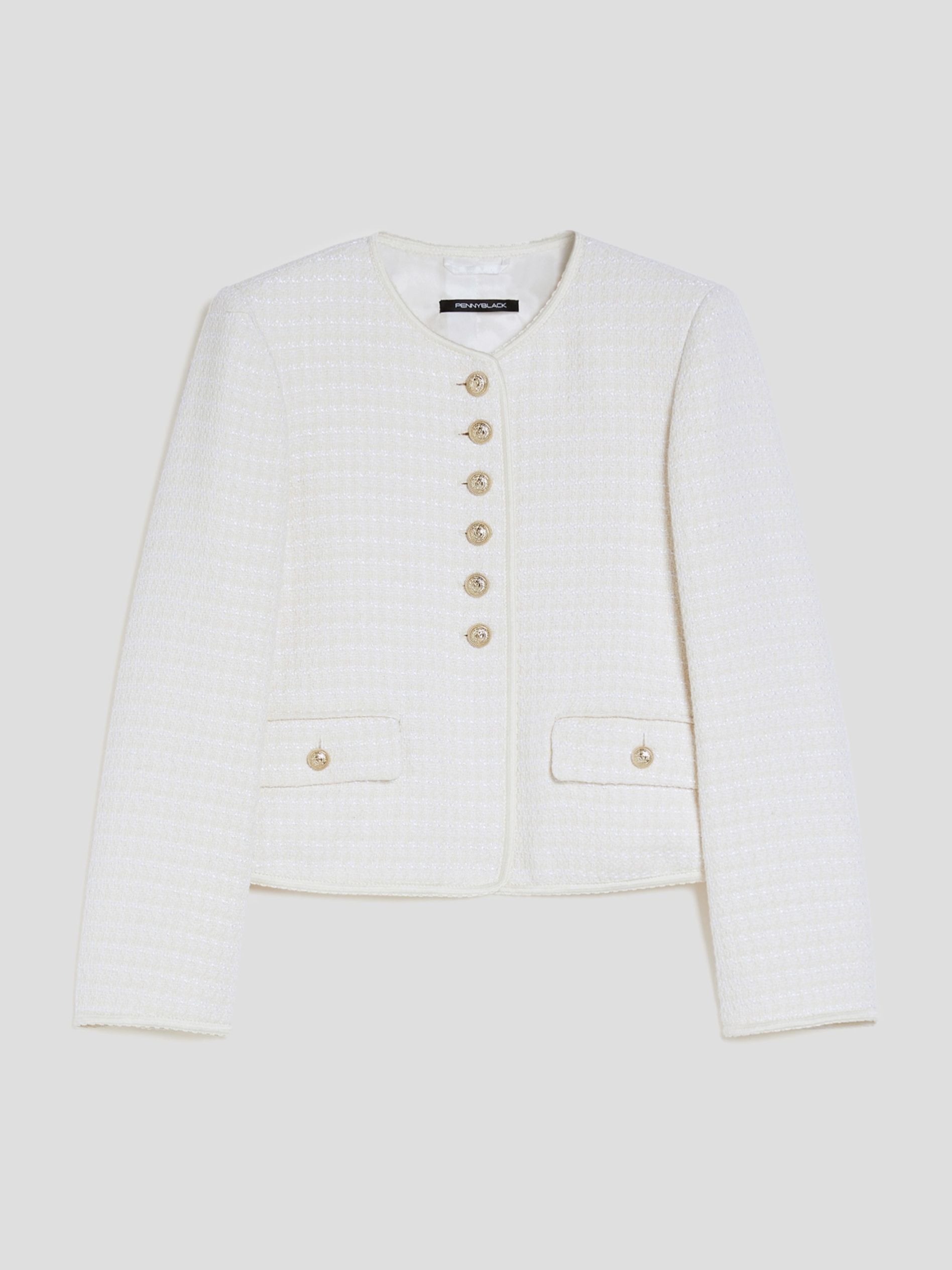 Жакет прямого кроя из смесовой ткани, сотканной по технологии «корзиночное плетение», итальянского бренда Pennyblack.