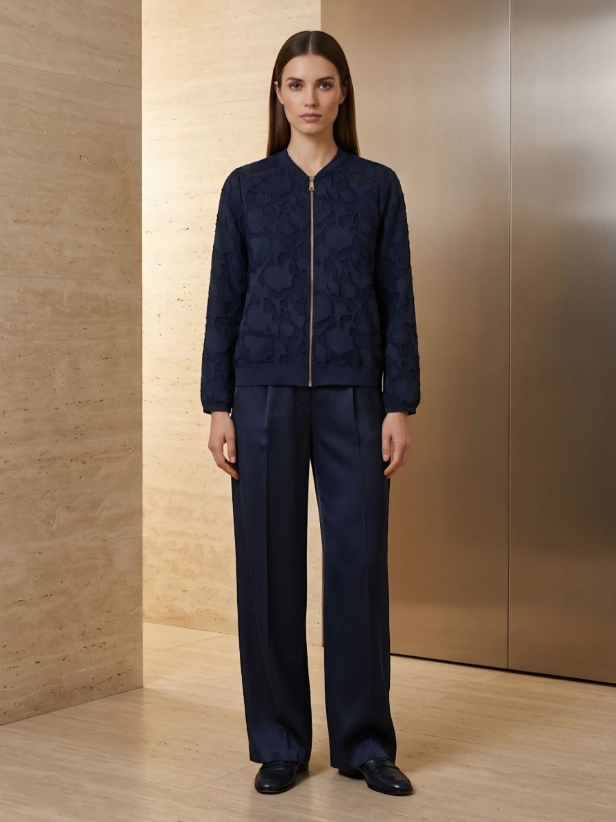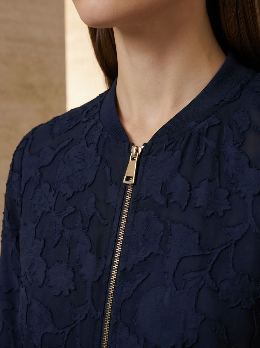 Летняя куртка-бомбер Frapp - это легкая куртка-бомбер с жаккардовым рисунком в цветочек по всему телу.