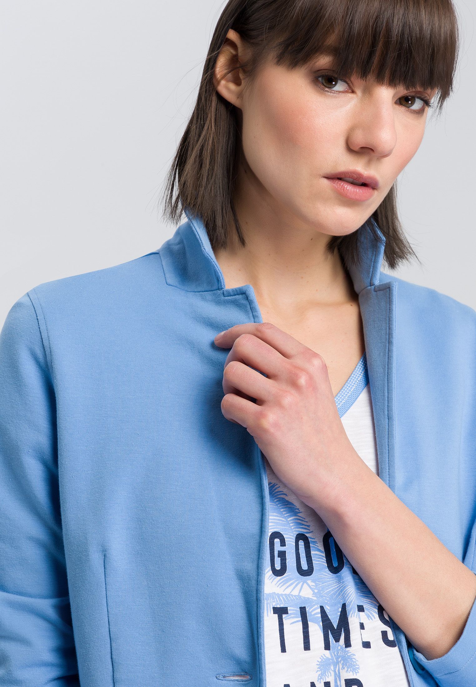 Минималистичность модели позволяет носить данный жакет как джинсами и брюками, так и с романтичными летними платьями, мини-юбками и джинсовыми шортами.