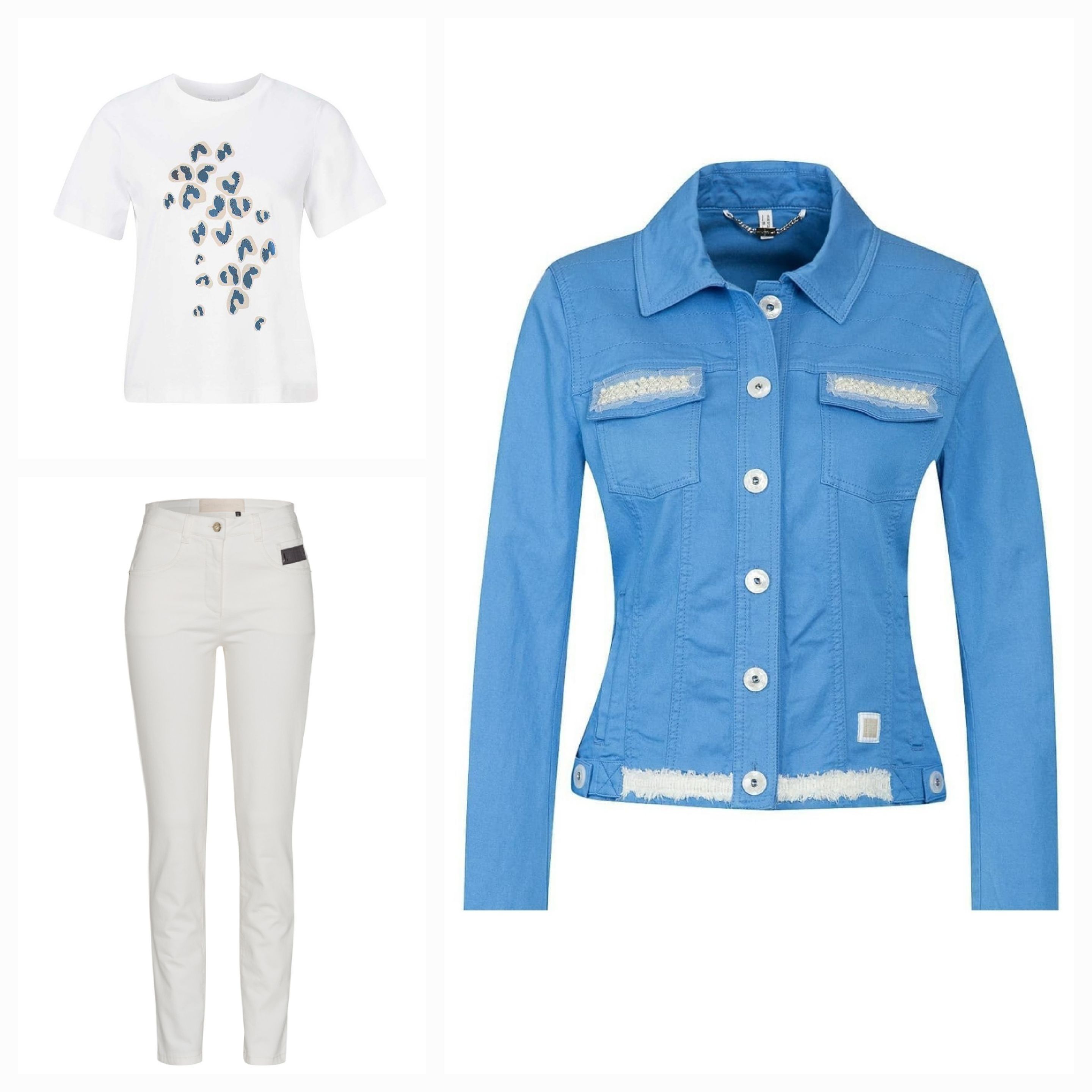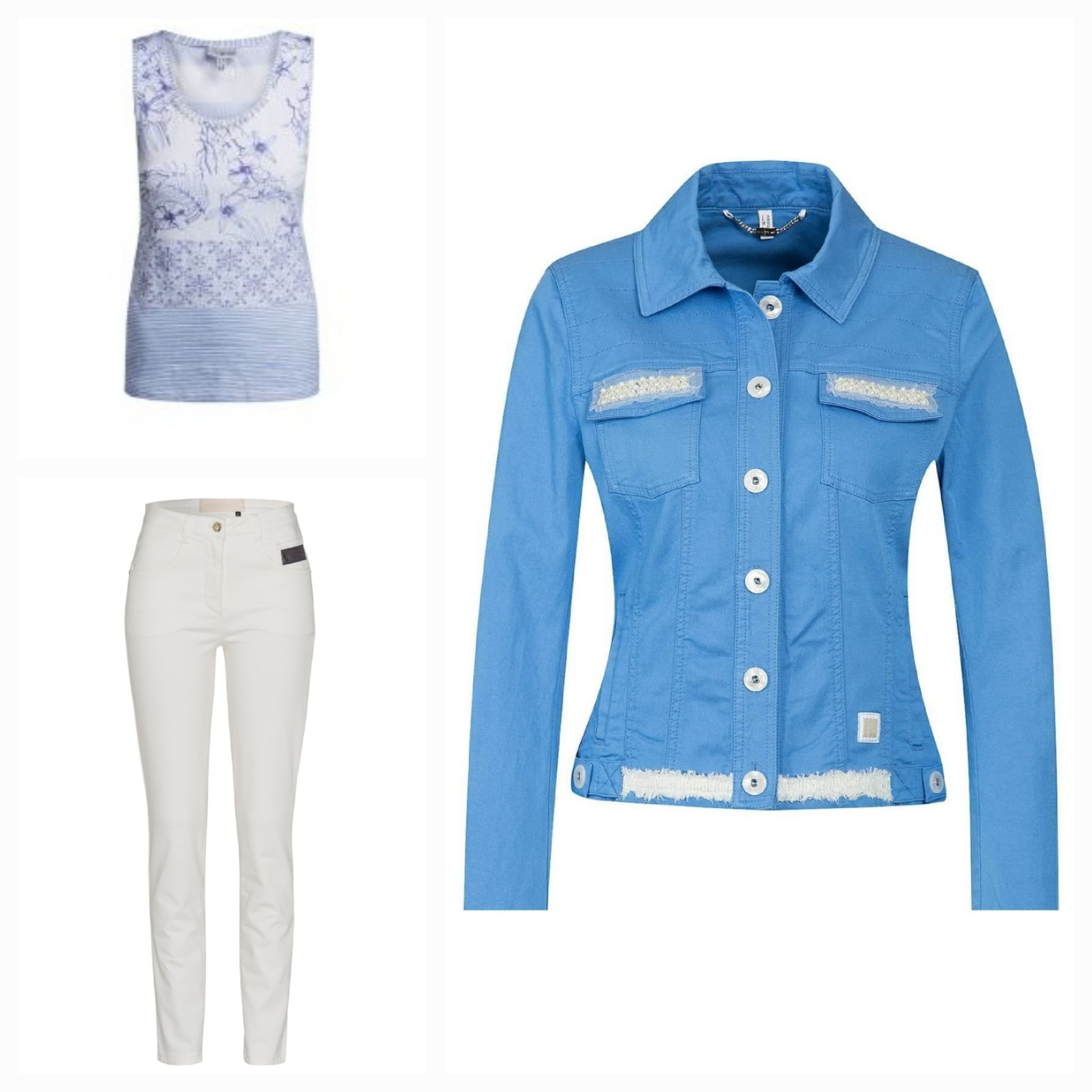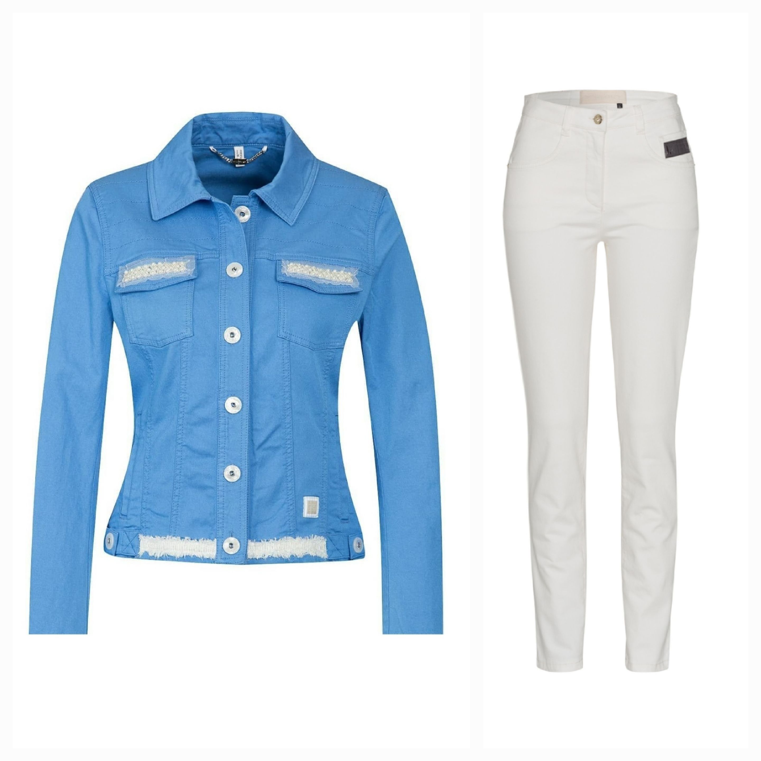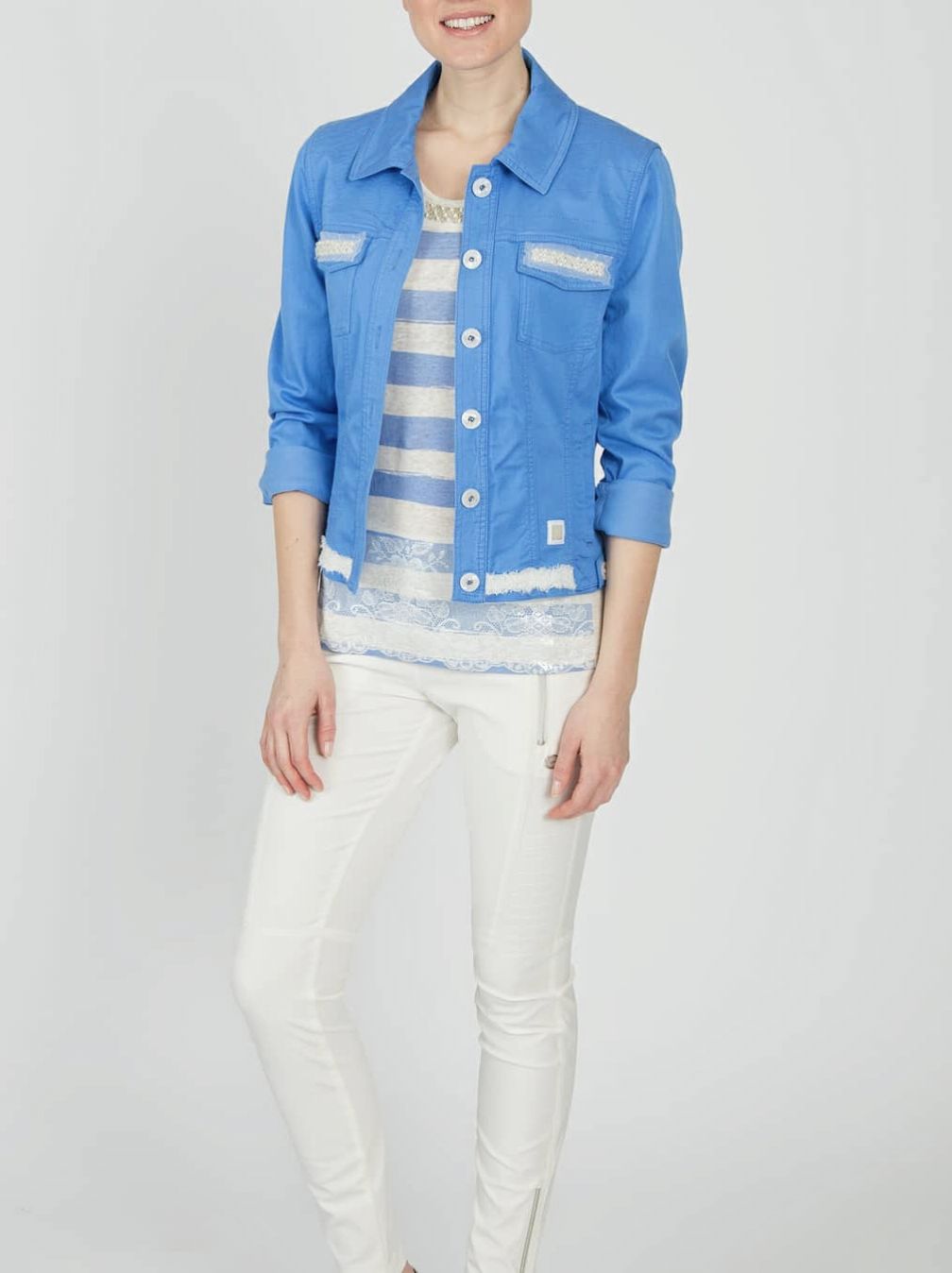 Жакет женский ярко-голубого цвета с полосами на спине и аппликацией в виде морской звезды из страз под "жемчуг" австрийского бренда Sportalm.
