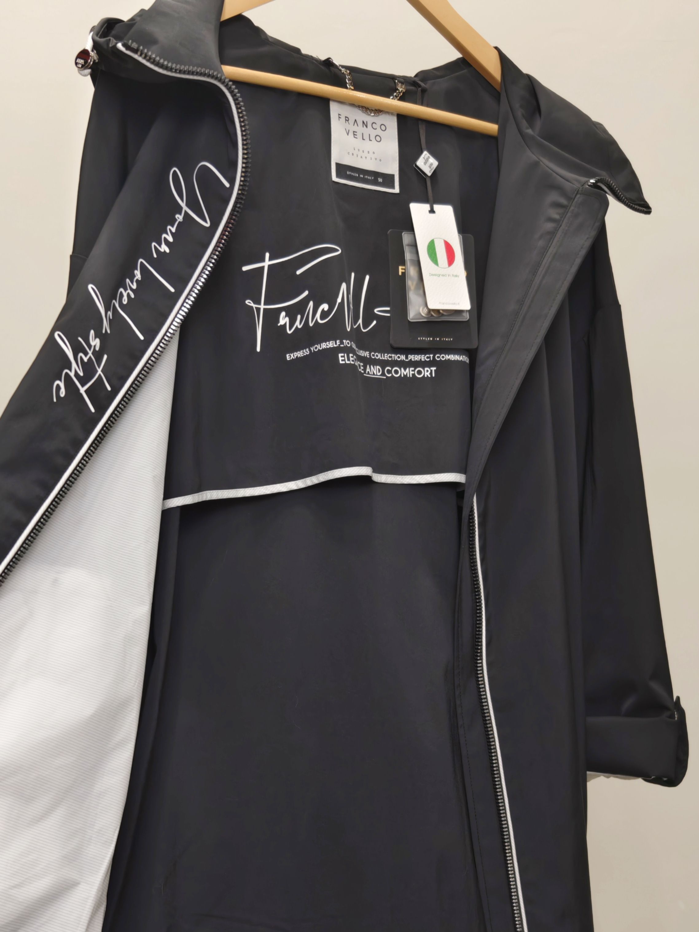 Плащ женский с капюшоном итальянского бренда Franco Vello сохранит вас в тепле и сухости под дождём благодаря водоотталкивающей обработке.