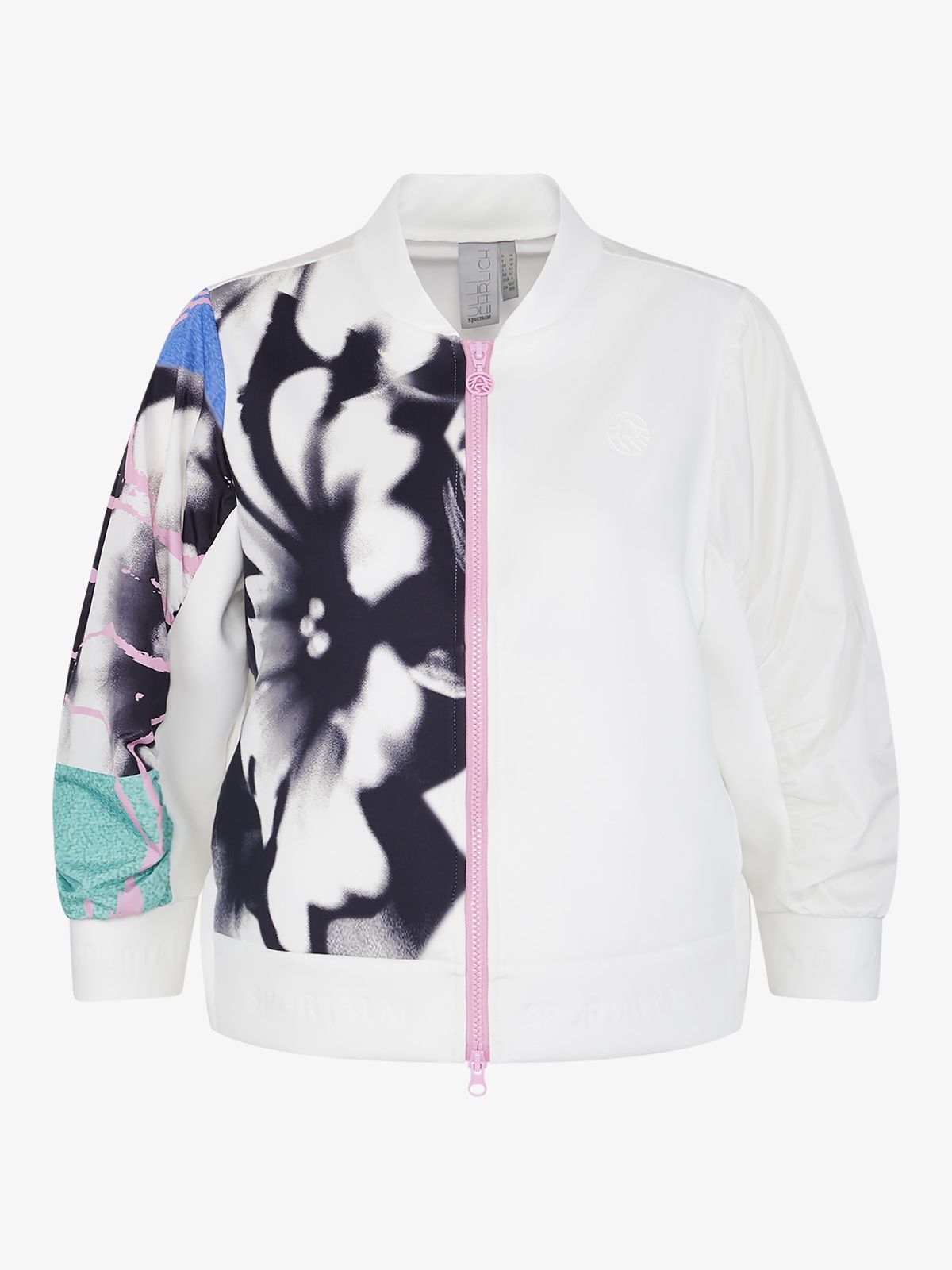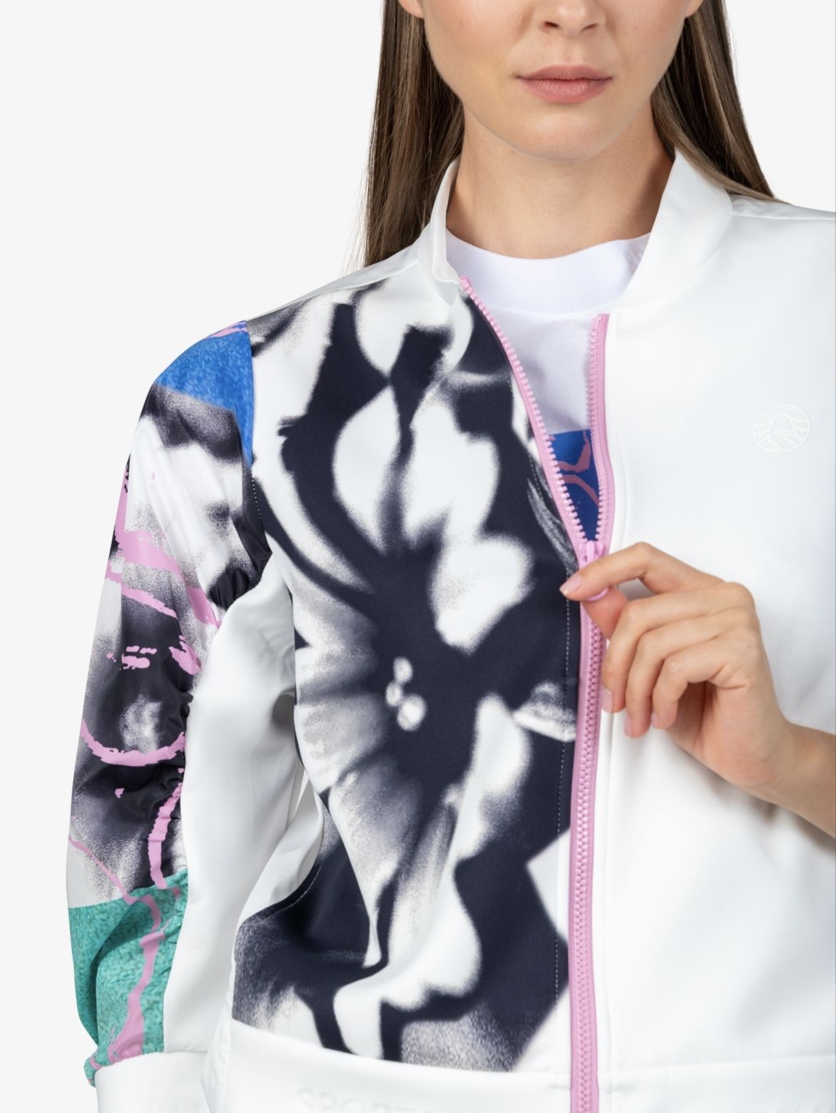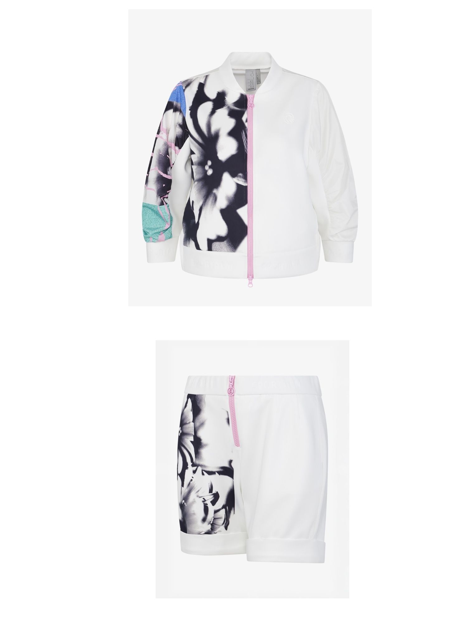 Рисунок: цветочный принт, асимметрично расположенный на куртке.