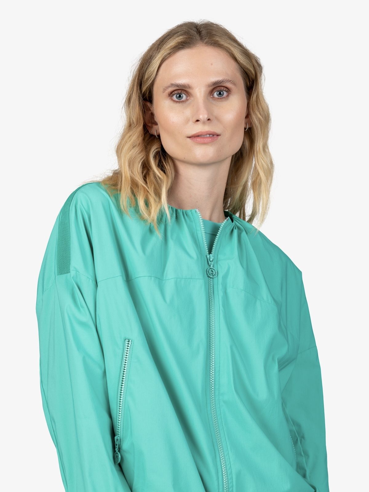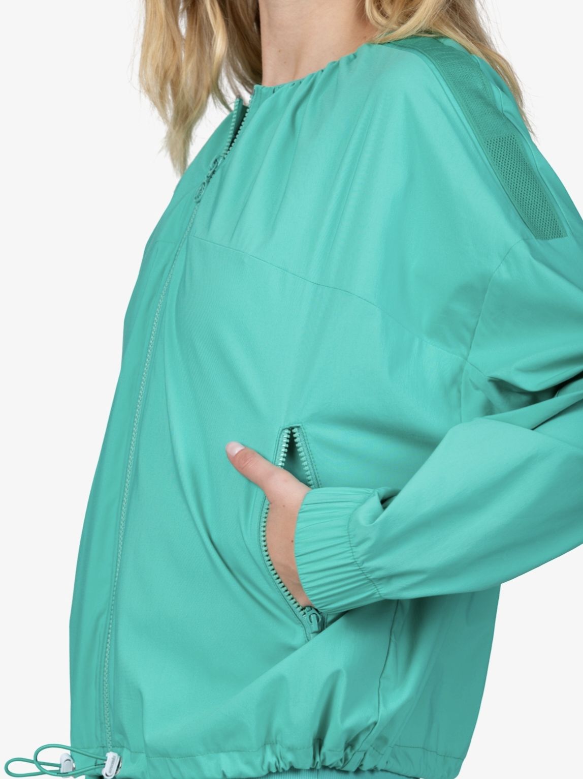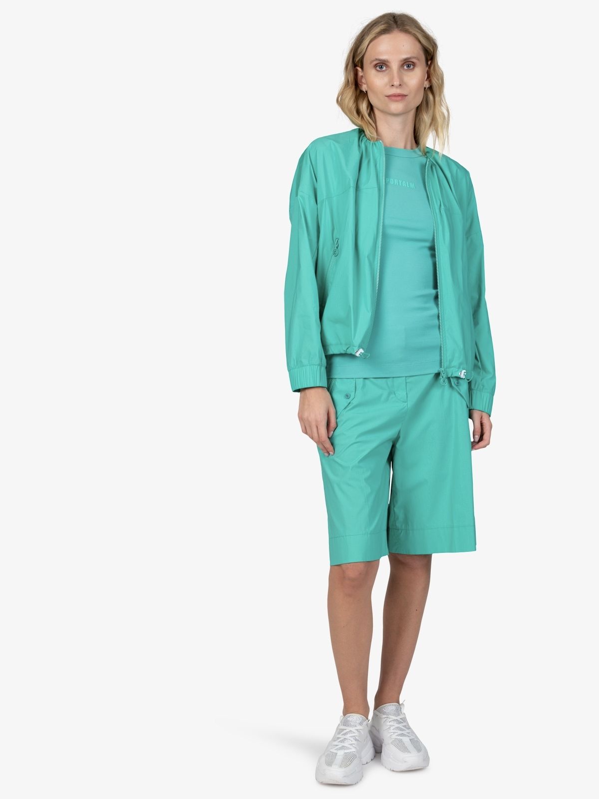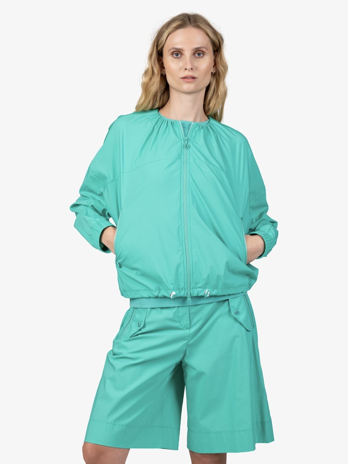 Эта ветровка-бомбер Sportalm из лёгкой хлопковой ткани впечатляет круглым вырезом с изысканной сборкой и сетчатой лентой на спущенном плече.