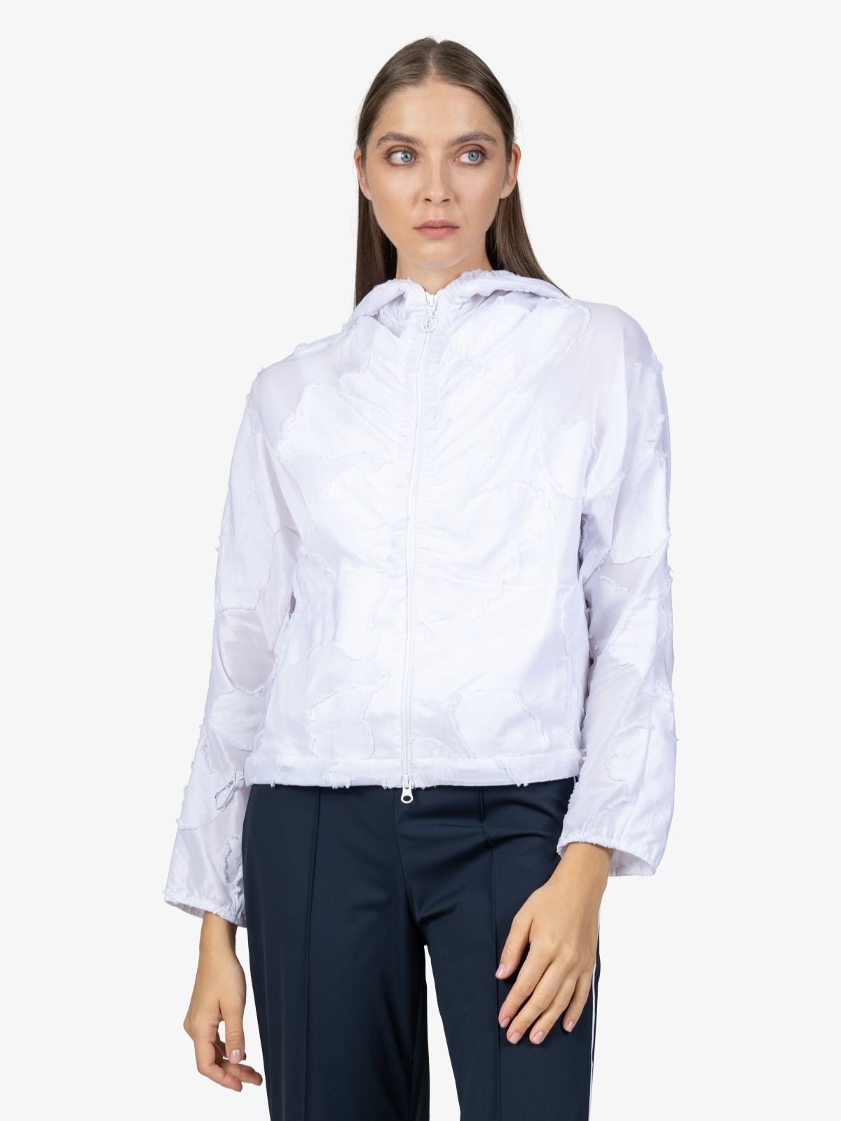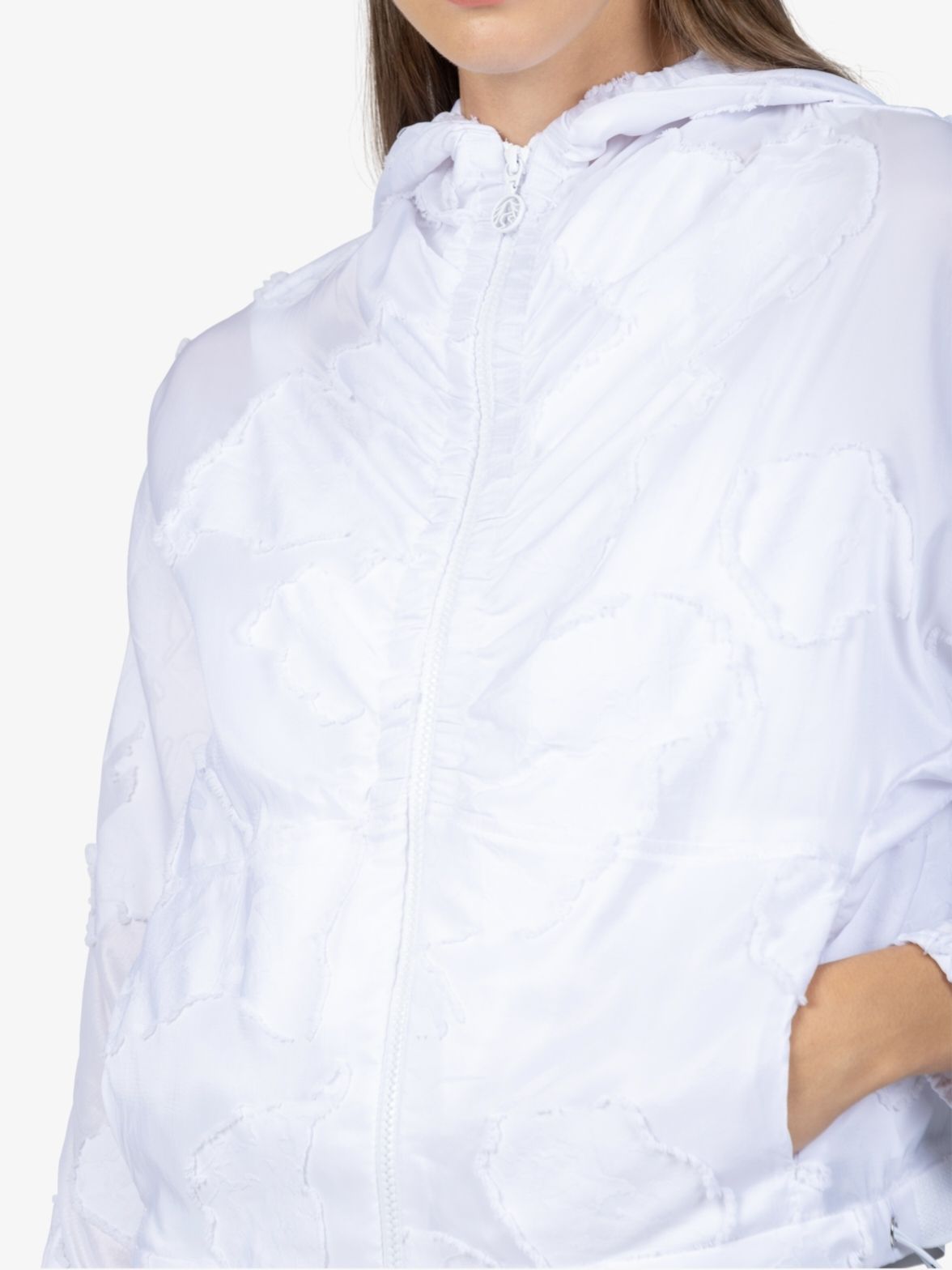 Эта ветровка-бомбер Sportalm из лёгкой хлопковой ткани впечатляет круглым вырезом с изысканной сборкой и сетчатой лентой на спущенном плече.