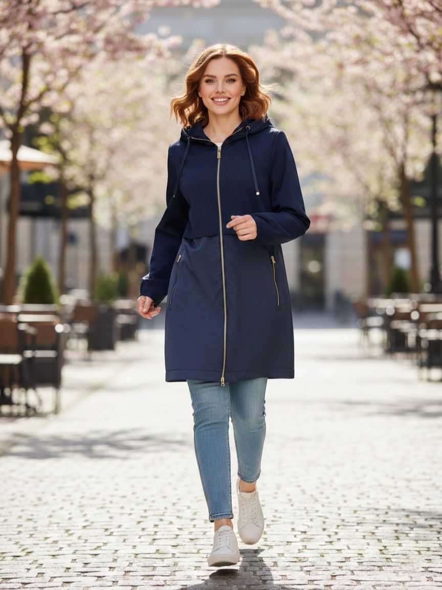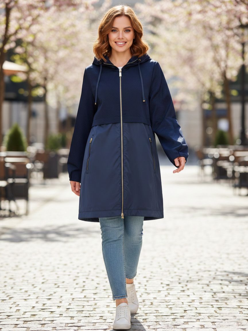 Женский классический плащ прямого кроя тёмно-синего оттенка итальянского бренда Franco Vello.